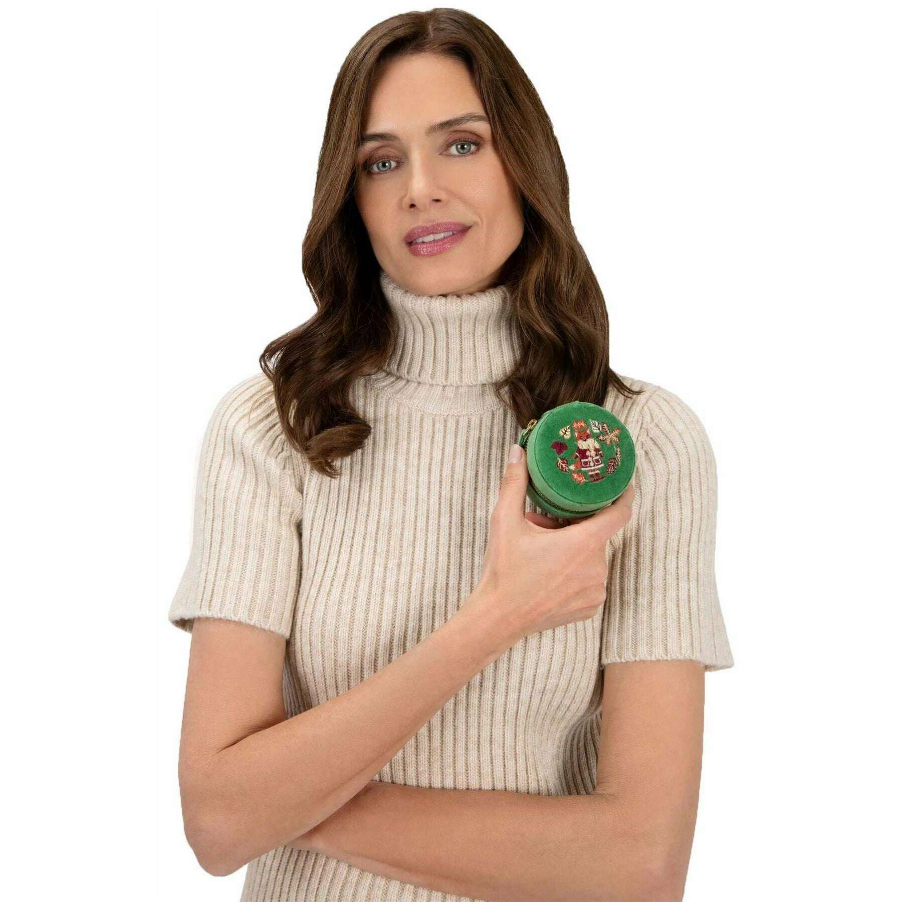 Pulver ræv rund fløjls smykkekasse - bregne grøn