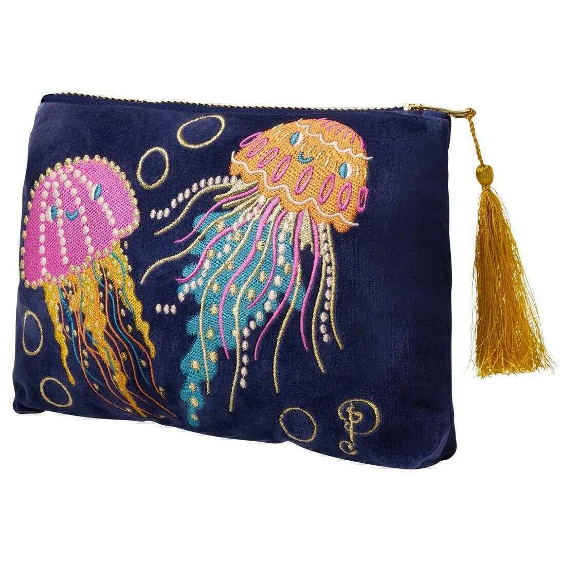 Denne godt fremstillede kvinders jolly gelé med fløjls lynlås pose fra pulver kommer i en marineblå farve og er fremstillet af 100% polyester fløjl. Alle poser leveres komplet med en gratis pulver gavepose. Pulveret Jolly Jellies Velvet Zip Pouch - Navy kan bruges til forskellige formål, såsom til opbevaring af make -up, hudpleje eller toiletartikler. Den har en lynlåset top lukning dekoreret med en smuk kvast fastgjort til lynlåsen, hvilket giver den et tidløst look. For at afslutte og selvfølgelig er showstopper det elegante og fantastiske broderede design på fronten, som kan beundres kontinuerligt. Denne lynlåsede pose ville gøre den perfekte gave.