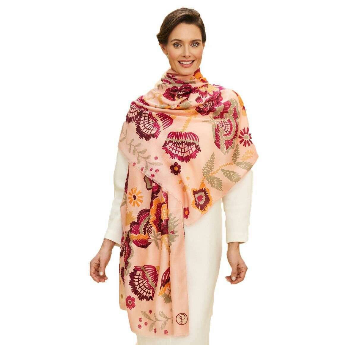 Pulver trykt blomster symmetri tørklæde - lyserød