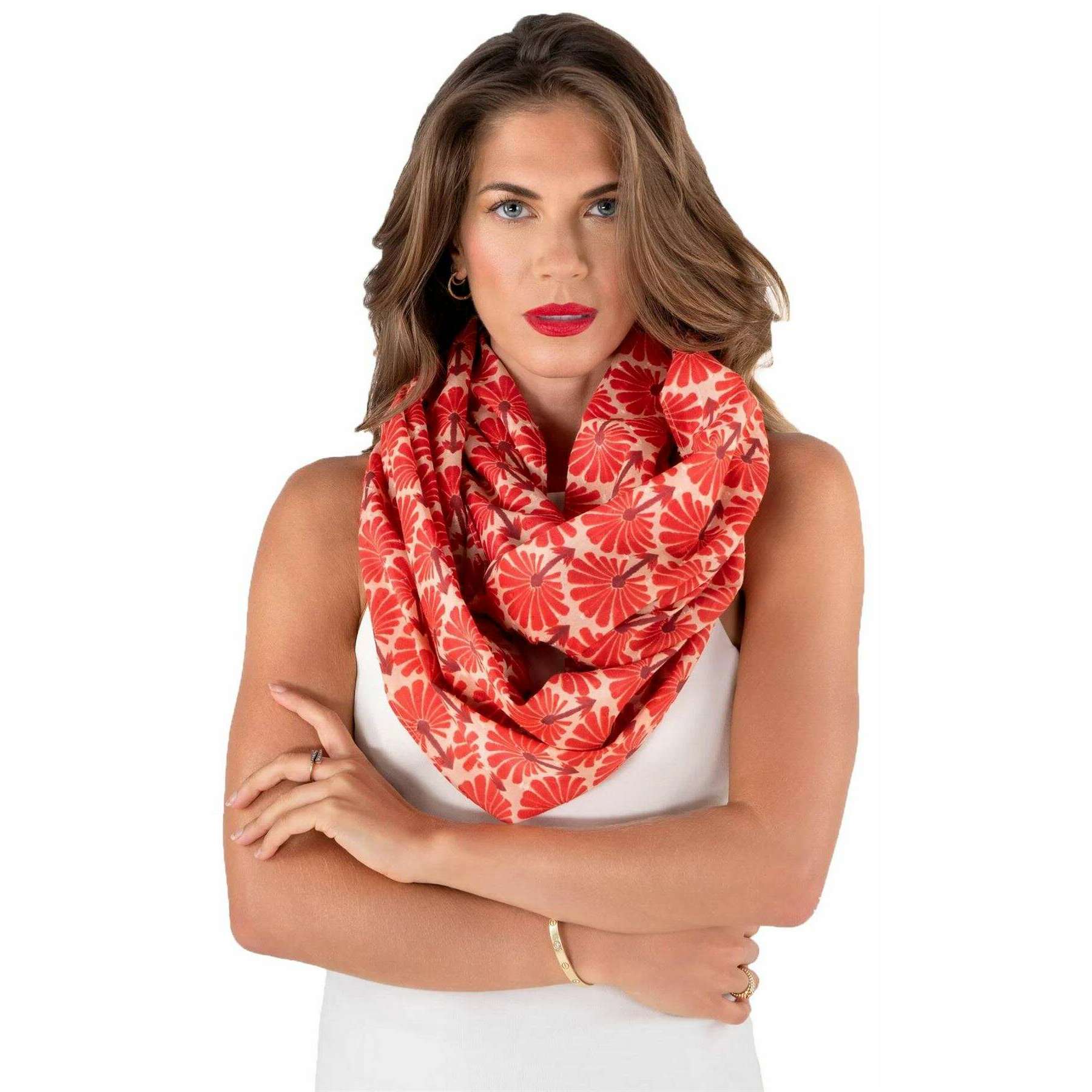 Powder Rouge Palms Infinity tørklæde - Rød/Beige