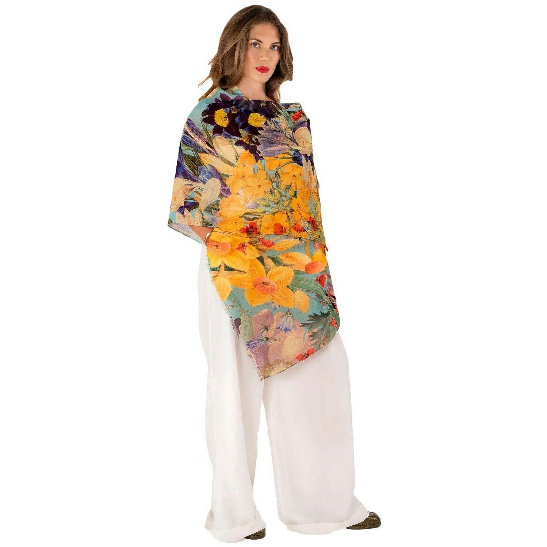 Pulver Spring Flora Linned Bomuld Tørklæde - Gul/Blå/Beige