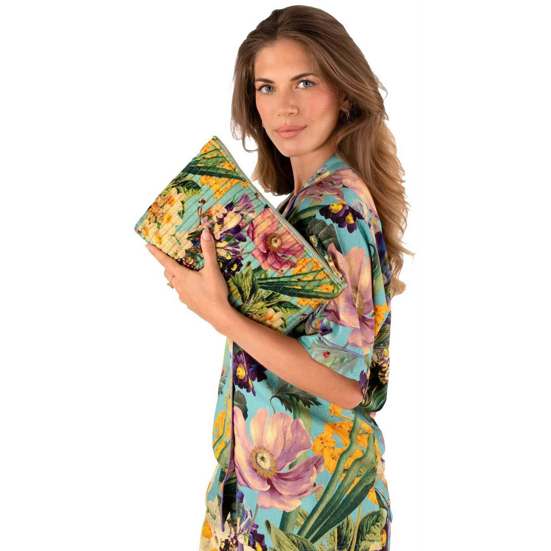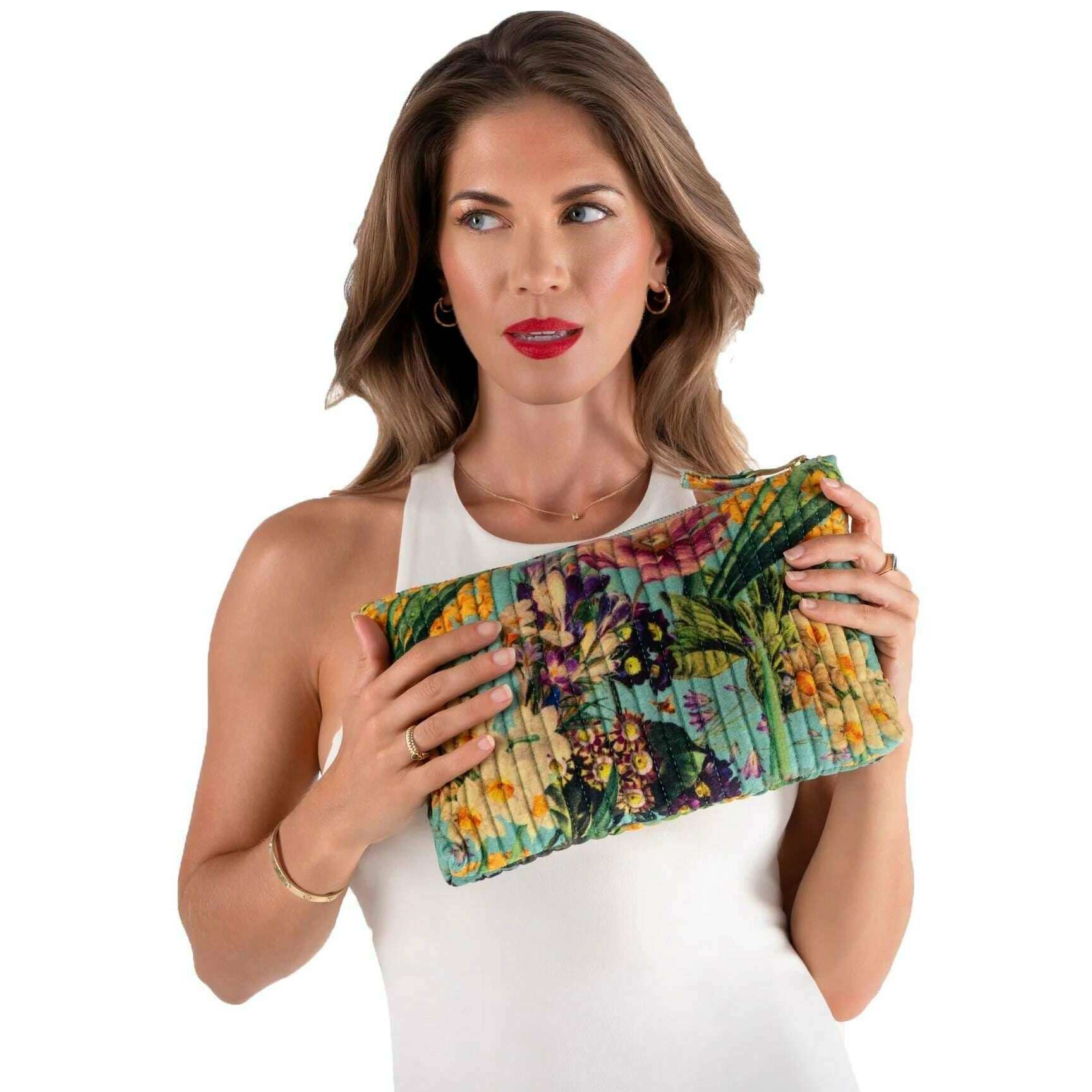 Powder Spring Flora Quilted Velvet Zip Pouch - Blå/Beige/Grøn