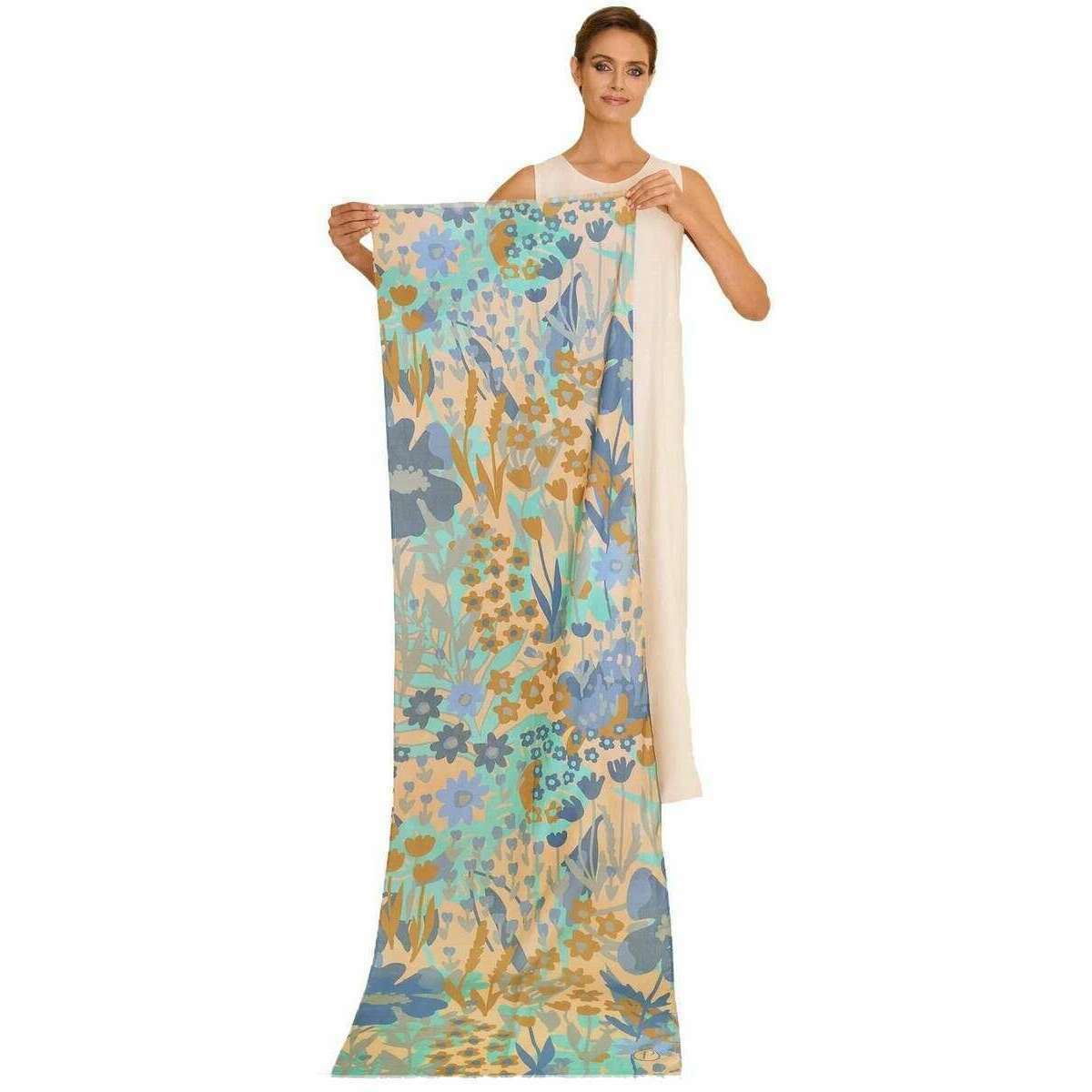 Pulver foråret blomster bomuld tørklæde - denimblå