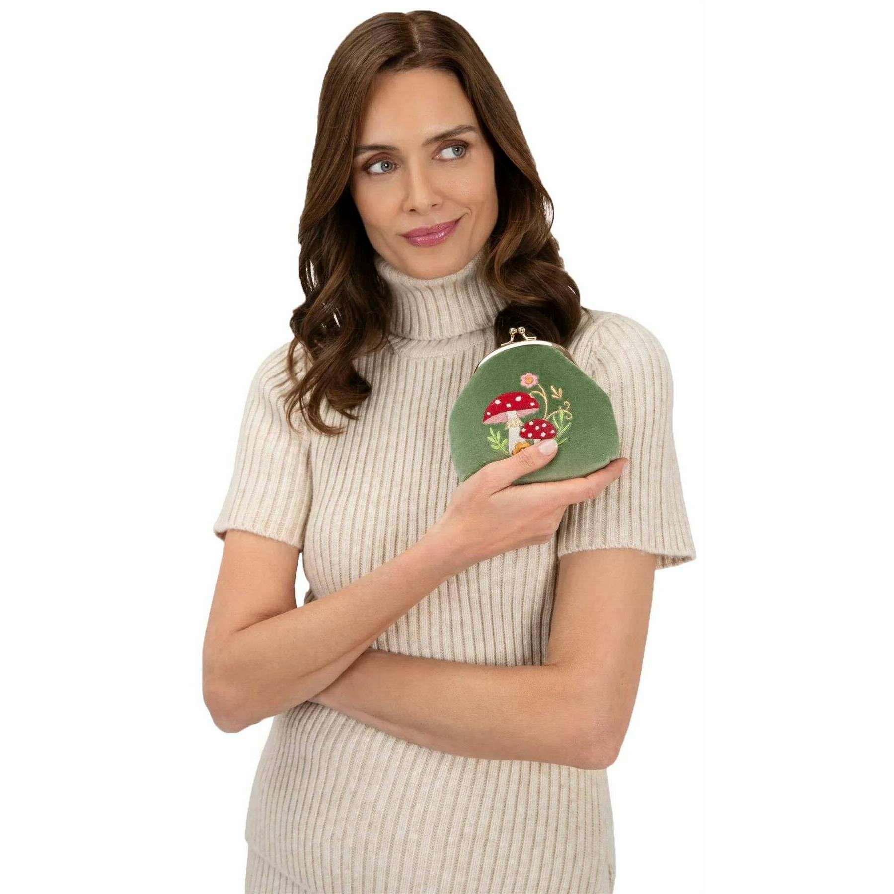 Pulver Toadstools Velvet Coin Purse - Sage Green