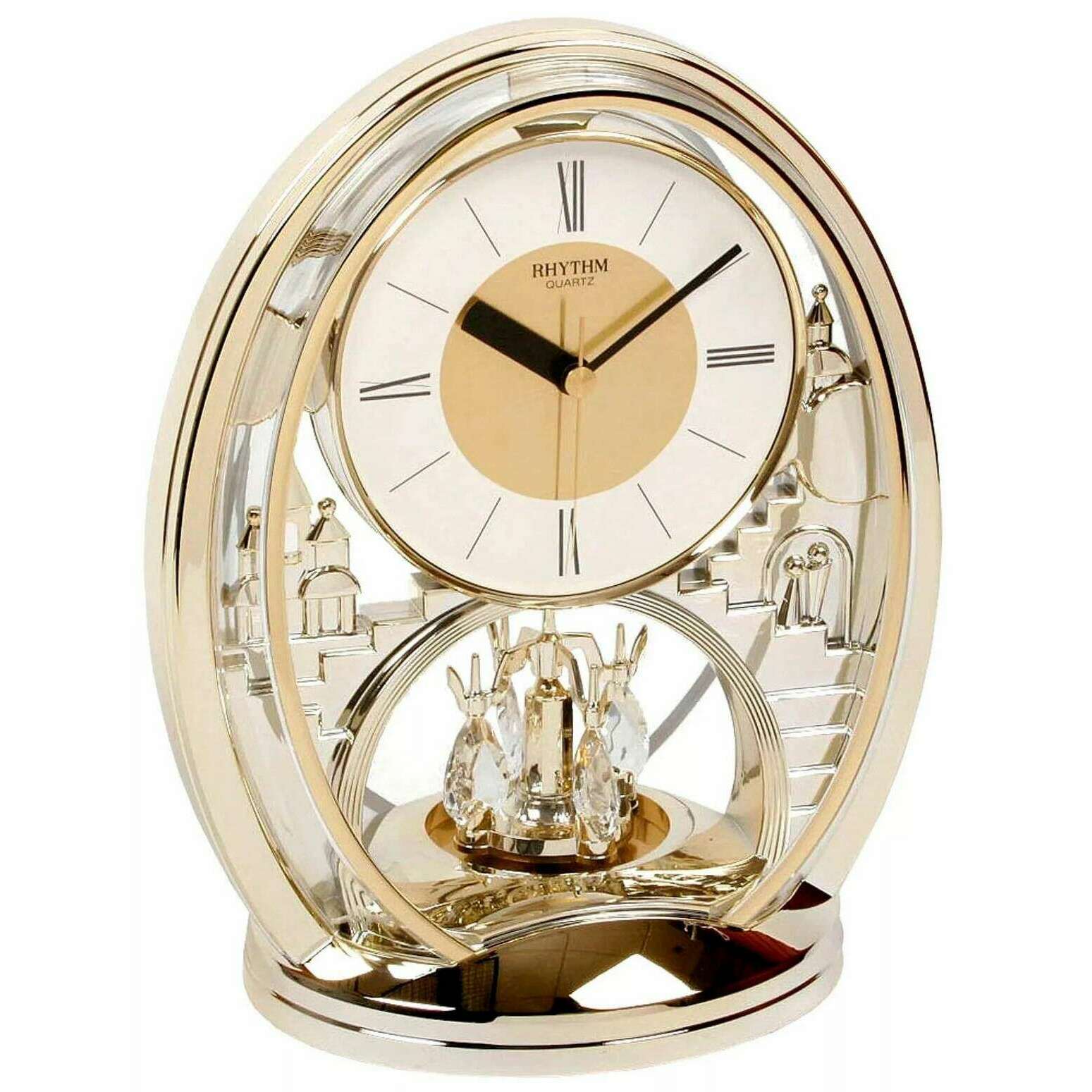 Rhythm Gilt Oval Roterende Pendulum Cont Mantel Ur - Guld