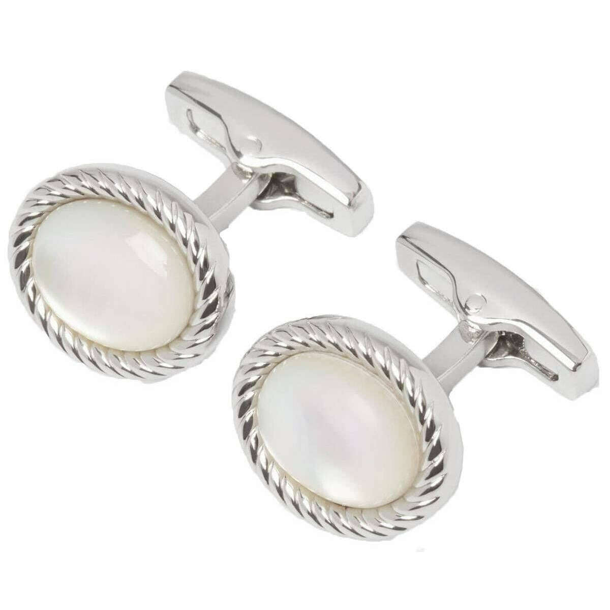 Simon Carter Charles Mother of Pearl Manchetknapper - Hvid/sølv