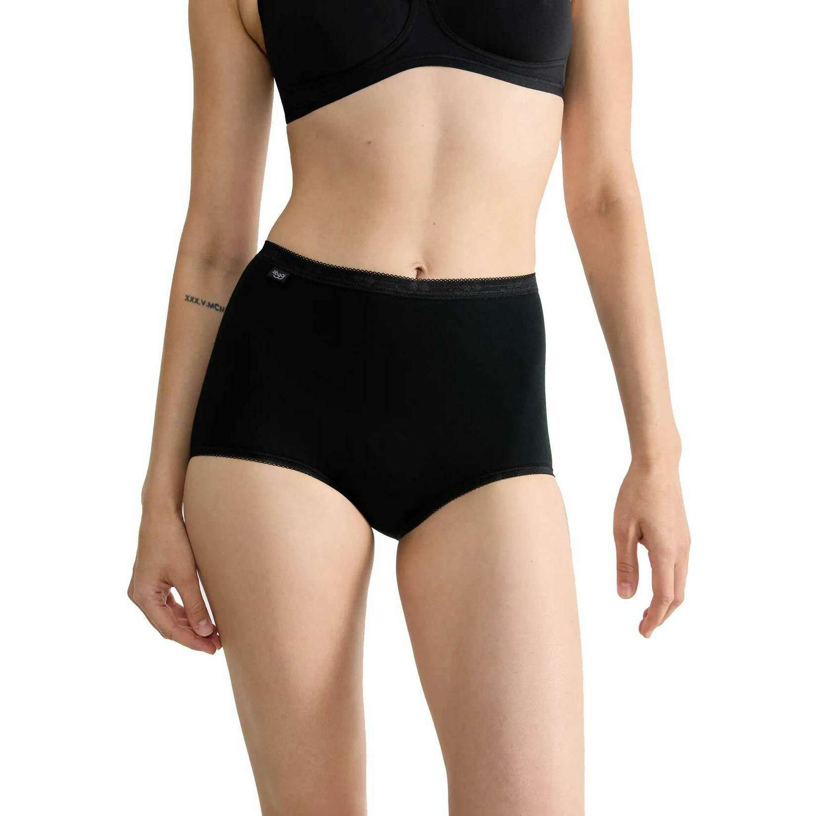 Bragt til dig af mærket Sloggi, denne sorte basic+ maxi-trøje til kvinder er lavet af 95% bomuld og 5% elastan. Også det sorte undertøj er designet i et almindeligt mønster. Det anbefales at maskinvaskes ved 60 grader for at holde dette undertøj i god stand. Alt undertøj kommer komplet med en sloggi-præsentationsboks. Sloggi Basic+ Maxi Knickers - Sort er et must-have for kvinder, der søger ultra komfort og pålidelighed. Dette par er lavet af højkvalitets bomuldsjersey, der er lavet til at holde, samtidig med at den opretholder den bløde følelse og elasticitet. Det klassiske snit med en høj talje og en lav benåbning er omhyggeligt designet for at sikre en behagelig pasform til hverdagsbrug.