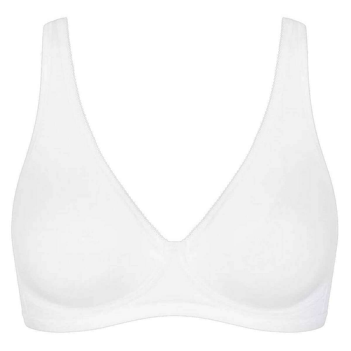 Denne bløde basic+-bh til kvinder er lavet af 80% bomuld, 18% elastan og 2% polyamid, med en hvid farve og er fra mærket Sloggi. Også det hvide undertøj er designet i et almindeligt mønster, Det anbefales at maskinvaske ved 40 grader for at holde dette undertøj i god stand. Alt undertøj leveres komplet med sloggi-emballage. Sloggi Basic+ Soft BH - Hvid er et must-have for kvinder, der søger ultra komfort og luksus. Denne bh er lavet af økologisk bomuld af høj kvalitet, der er lavet til at holde, samtidig med at den opretholder den bløde følelse og elasticitet. De ikke-polstrede formstøbte skåle, medium støtte og justerbare bredere stropper er omhyggeligt designet til at sikre en behagelig pasform til hverdagsbrug, og den sømløse pasform giver et usynligt look under ethvert outfit.