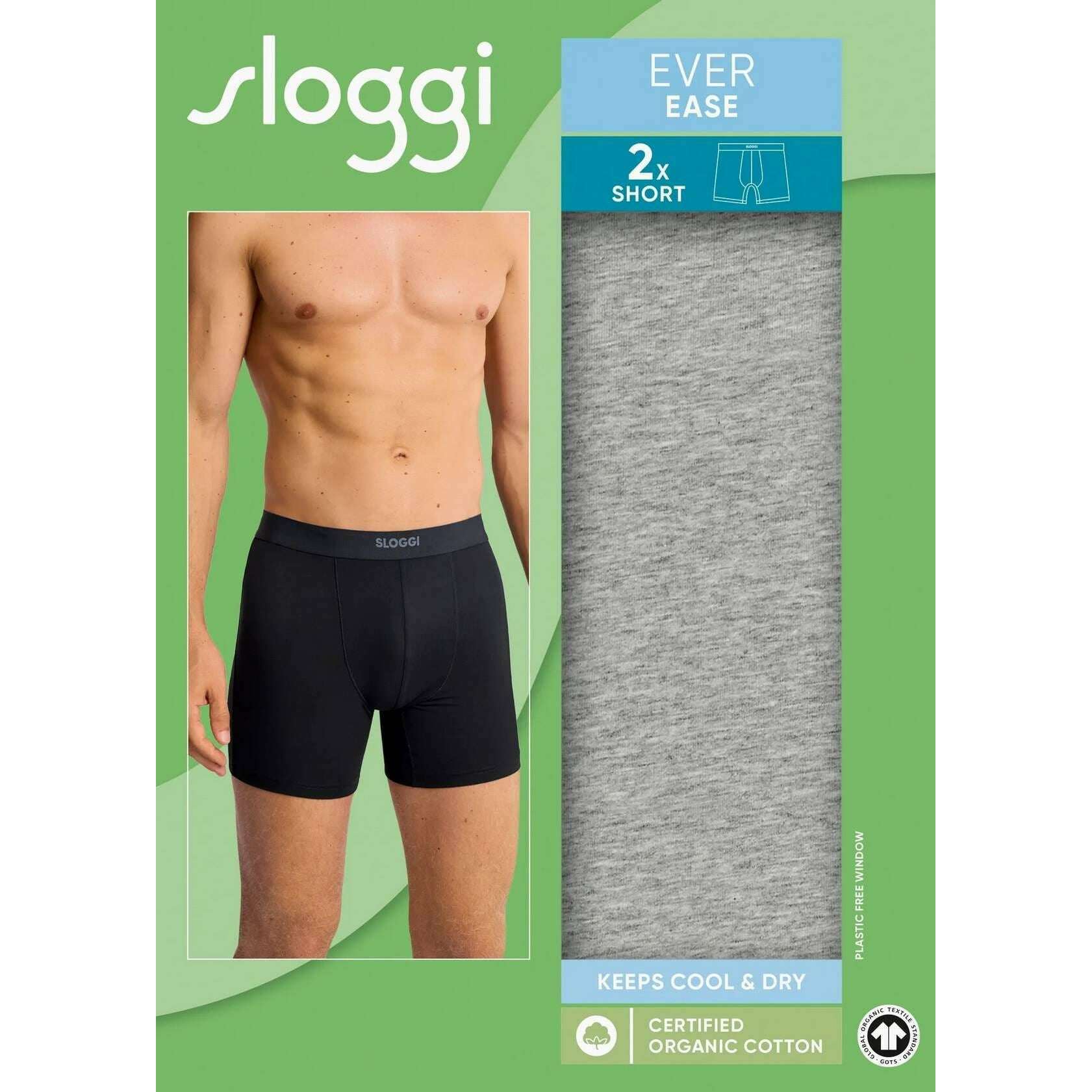 Denne ever ease 2-pack boxershort til mænd er designet af mærket Sloggi i en grå farve og er lavet af 95% bomuld og 5% elastan. Også det mørkegrå melerede undertøj er designet i et almindeligt mønster. Det anbefales at maskinvaske 40 grader for at holde dette undertøj i god stand. 2-pak undertøj er værdi for pengene, hvilket sikrer, at det er et godt køb. Alt undertøjet leveres komplet med sloggi-emballage. Sloggi Ever Ease 2 Pack Boxer Short - Dark Grey Melange har kølende HeiQ smart temp teknologi, der tilpasser sig din kropstemperatur for behageligt slid. Dette undertøj er fremstillet med øko-certificeret økologisk bomuld, der giver stor bæredygtighed for miljøhjælp og optimal komfort med det åndbare og højkvalitetsmateriale. Tilbyder et tørt slid er det åndbare stof og hurtigtørrende funktion for ekstra komfort hele dagen.