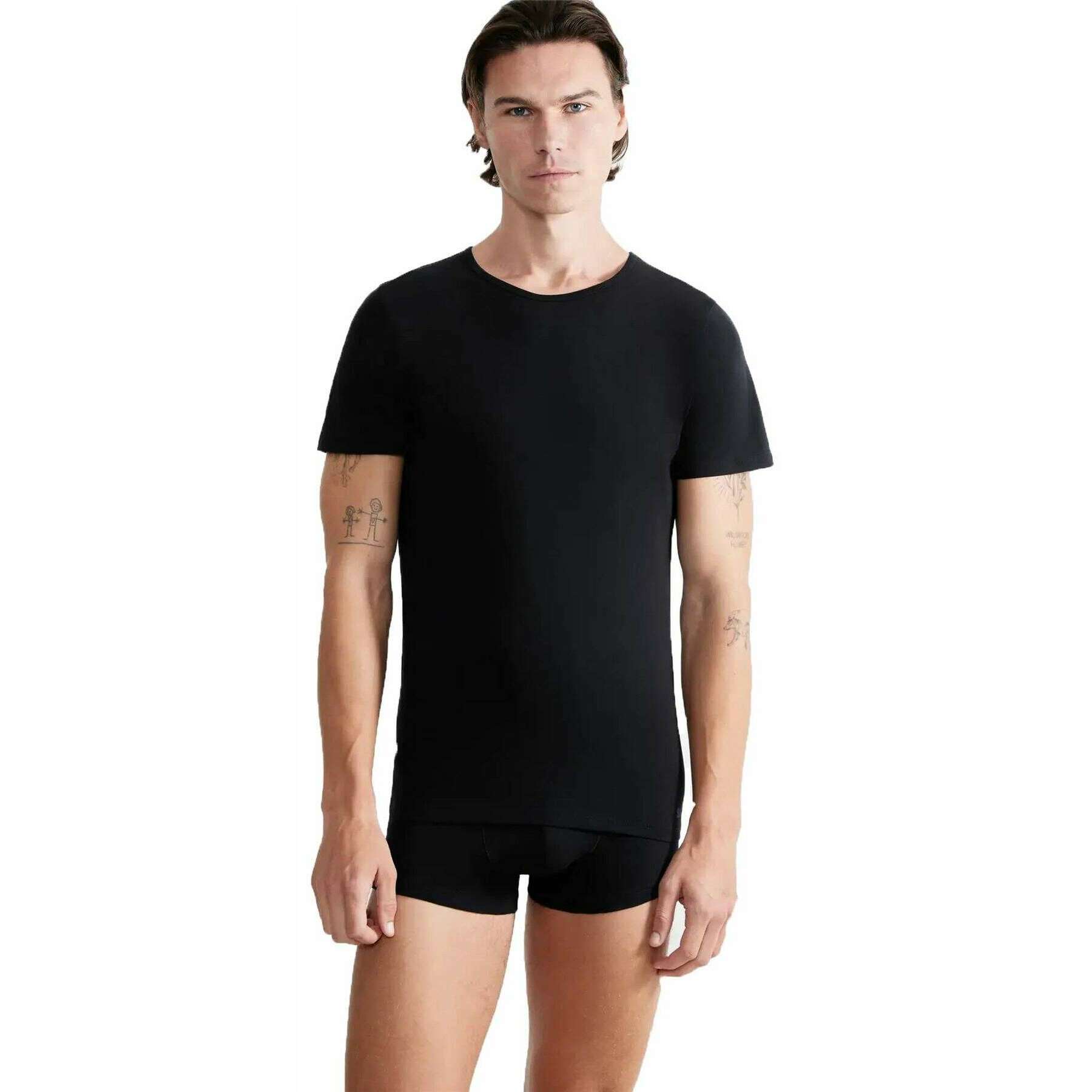 Bragt til dig af mærket Sloggi, denne sorte t-shirt med o-hals til mænd er lavet af 95% bomuld og 5% elastan. Også den sorte t-shirt er designet i et almindeligt mønster. Det anbefales at maskinvaske 40 grader for at holde denne t-shirt i god stand. Alle t-shirts kommer komplet med sloggi emballage. Sloggi Ever Ease T-shirt med o-hals - sort perfekt til alsidig styling, mens den tilbyder optimal komfort. Den runde hals og regular fit design giver et alsidigt moderne og nutidigt look, der kan styles på uendelige måder. Lavet med en kølende HeiQ smart temp teknologi bomulds- og elastanblanding giver en blød og åndbar slid, samtidig med at du får bevægelsesfrihed under dine daglige rejser.