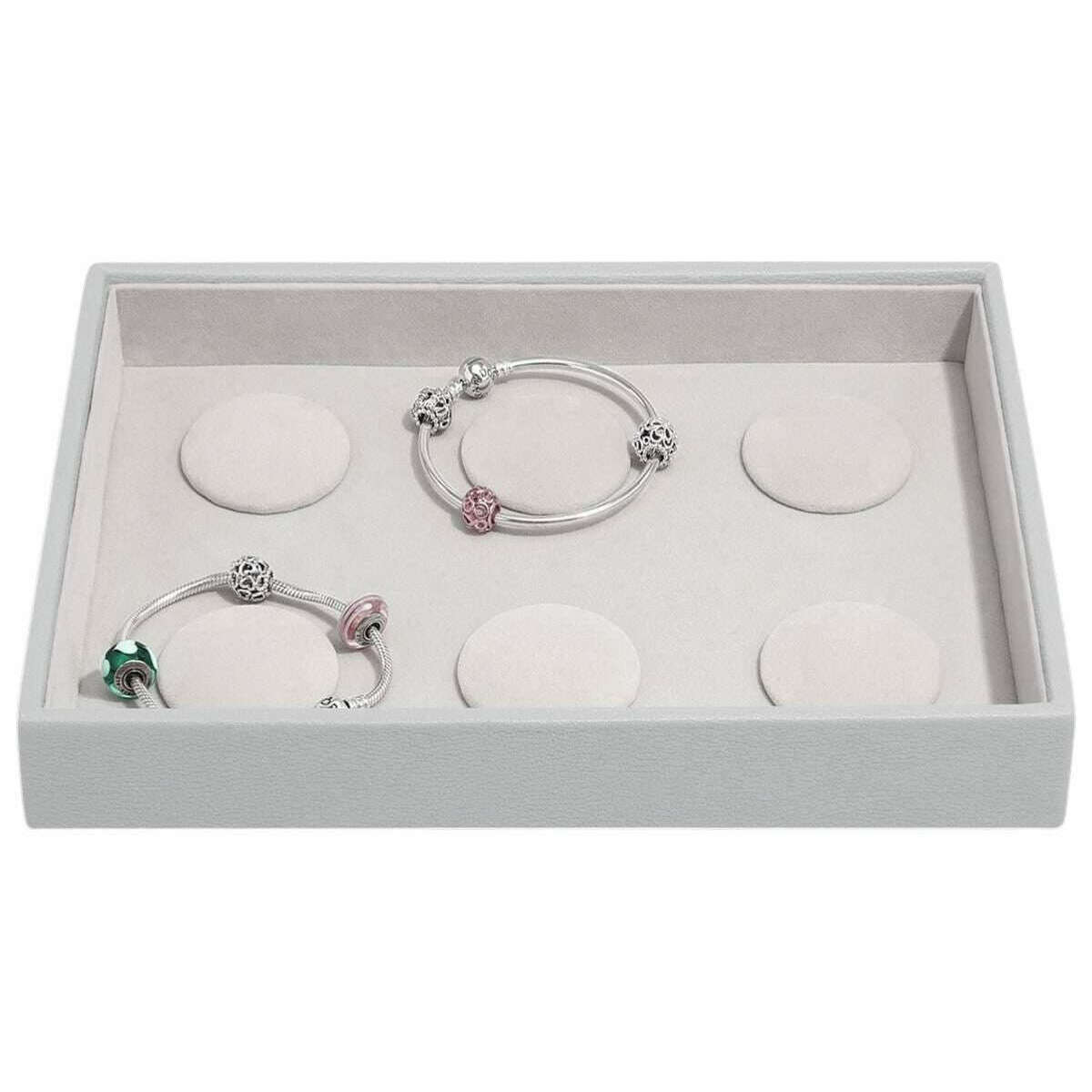 Designer Stackers har bragt dig dette smykkeskrin i imiteret læder og fløjl til kvinder med småstensgrå toner. Den måler 3,7 cm (højde) x 25 cm (bredde) x 18 cm (dybde). Det anbefales at tørre af for at holde dette smykkeskrin i god stand. Alle smykkeæskerne leveres komplet med stabler-emballage. Stackers Classic 6 armbåndslag - Pebble Grey rummer 6 armbånd med et polstret center til hver, så det ikke bliver viklet sammen. Foret med smukt fløjl for at holde dine smykker i uberørt stand, kan det bruges som enkeltstående på din kommode eller parres med andre smykker for at bygge et større smykkeskrin, skræddersyet til dig.