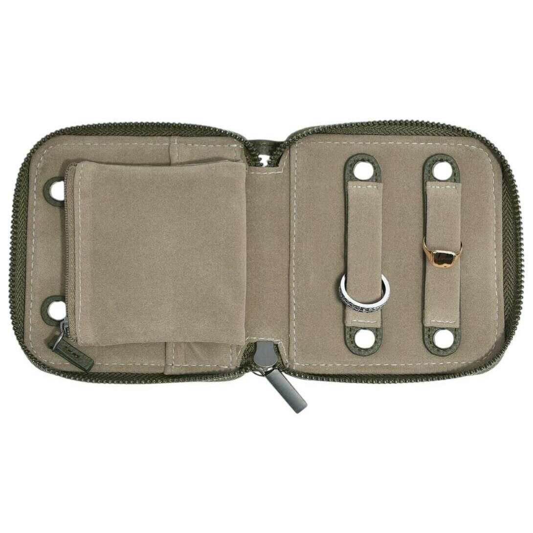 Denne kompakte smykkerulle til kvinder er lavet af mærket Stackers i en grøn farve og er lavet af imiteret læder og fløjl. Den måler 2,5 cm (højde) x 11 cm (bredde) x 11 cm (dybde). Det anbefales at tørre af for at holde dette smykkeskrin i god stand. Alle smykkeæskerne leveres komplet med stabler-emballage. Stackers Compact Jewellery Roll - Olive Green er den perfekte rejseledsager. Dens lynlås-design vil holde dine værdifulde stykker sikre indeni, og fløjlsinteriøret sikrer, at de holdes uberørte. Den har opbevaring til dine ringe, 2 halskæder eller kæder og en alsidig pose, der kan rumme ting som manchetknapper eller lyserøde slips. Dens kompakte silhuet gør den ideel til korte ture, da den kan glide ned i din daglige taske.