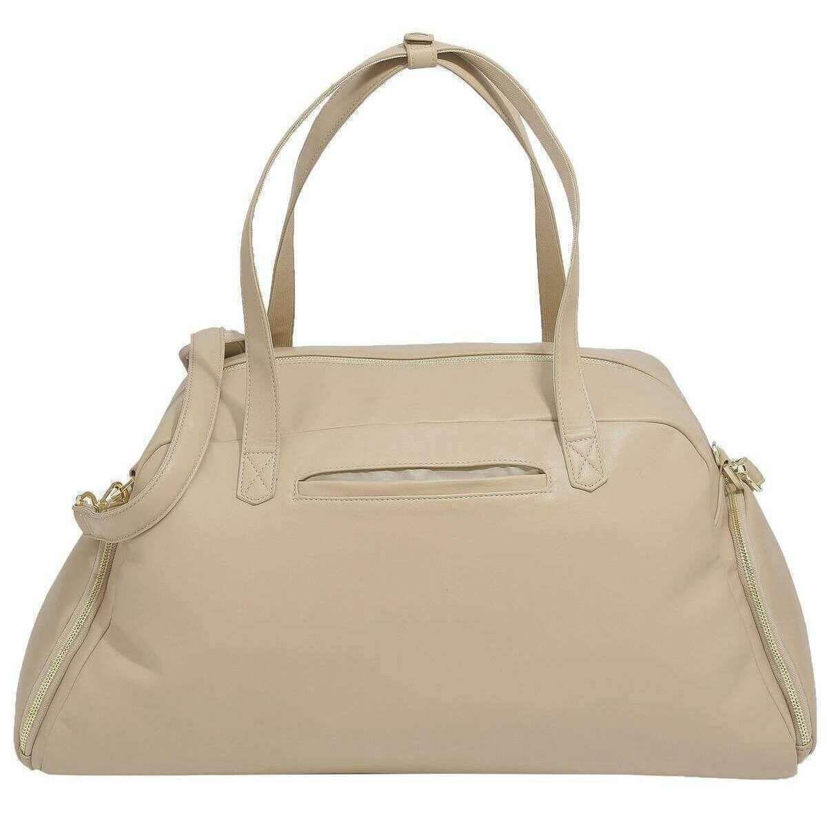 Denne velpladede kvindes gymnastikpose fra stablere kommer i en kamel beige farve og er fremstillet af faux læder og nylon. Det måler 27 cm (højde) x 57 cm (bredde) x 27 cm (dybde). Alle poserne kommer komplet i stablere emballage. Stackers Gym Bag - Camel Beige har uovervindelige funktioner, der sikrer, at du har alt og mere, end du har brug for til gymnastiksalen eller dine rejser. Denne taske er et must-have, hvis du ofte er på gymnastiksalen, der har brug for væsentlige ting, såsom trænere, en yogamåtte, et håndklæde, en skift af tøj, en flaske og plads til at holde dine daglige væsentlige ting. Det slanke og elegante design er fantastisk til at matche nogens stil, mens den børstede guldhardware tilføjer et sofistikeret touch.
