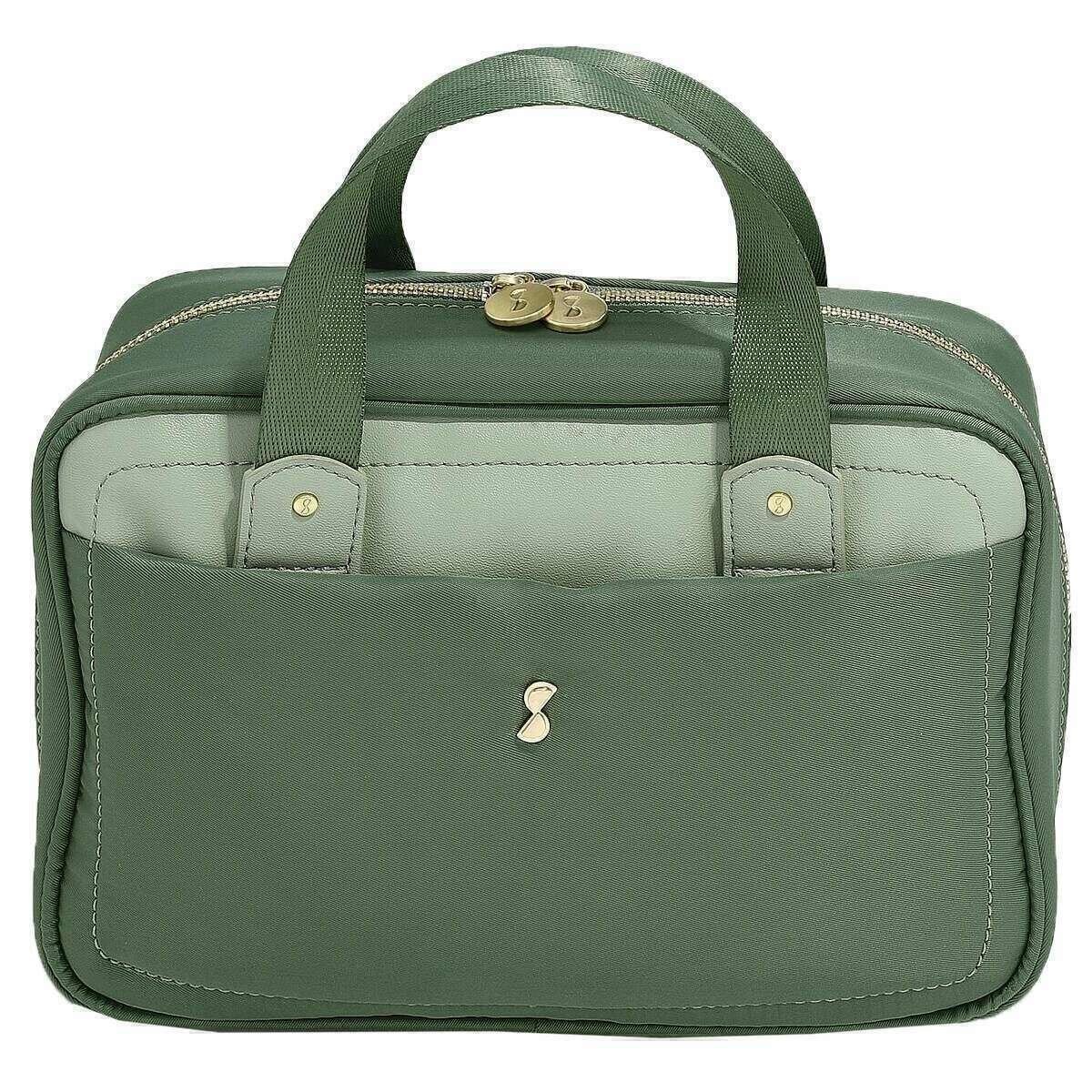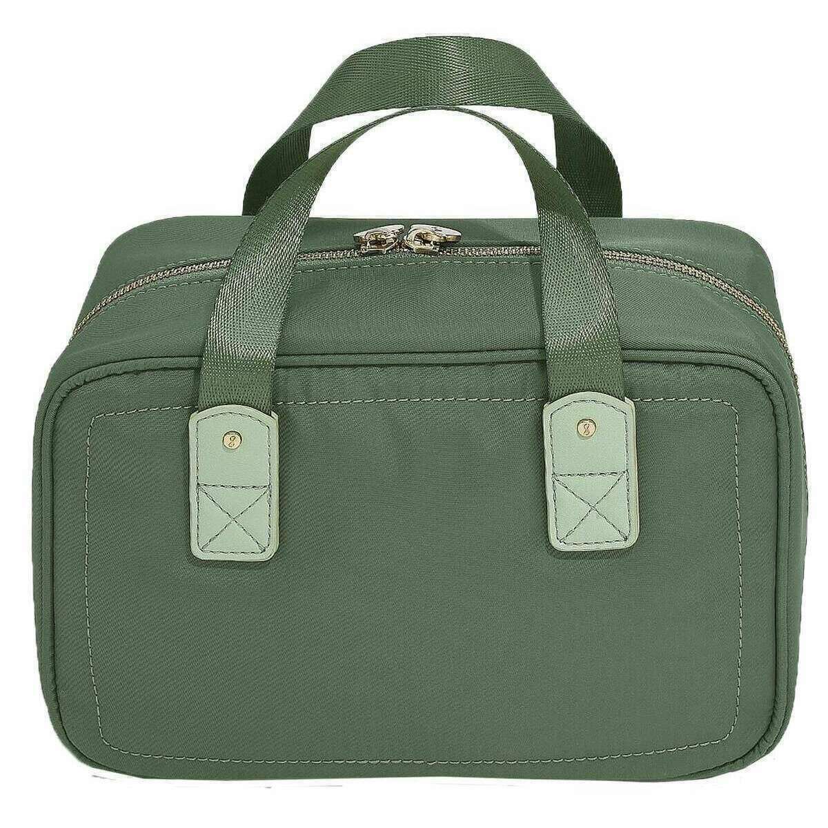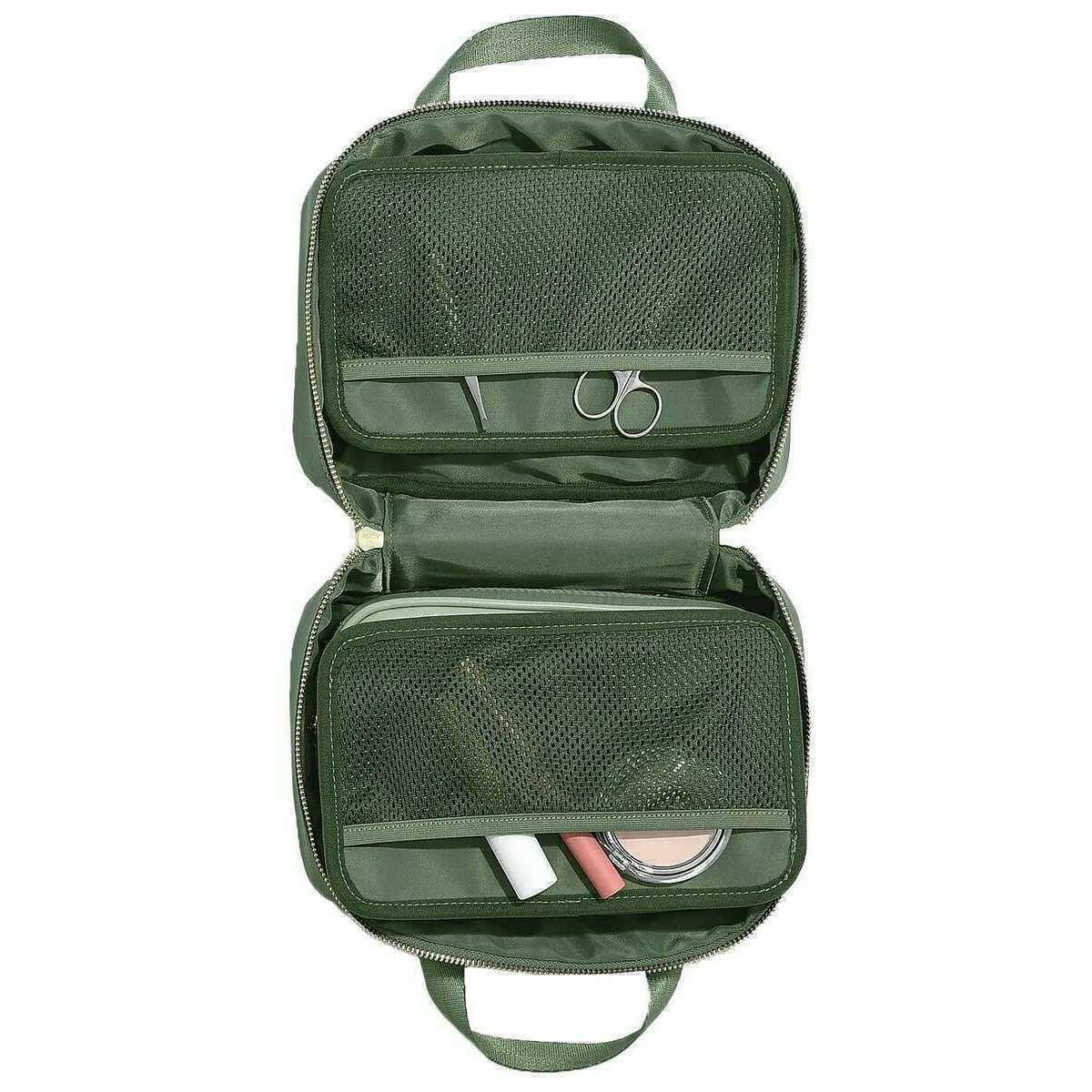 • 4 sektioner, foldning og lynlås mekanisme, 2 bær håndtag, hængende krog øverst, flere rum, lynlåslommer, elastiske sløjfer, aftageligt sektion, kompakt spejl inkluderet