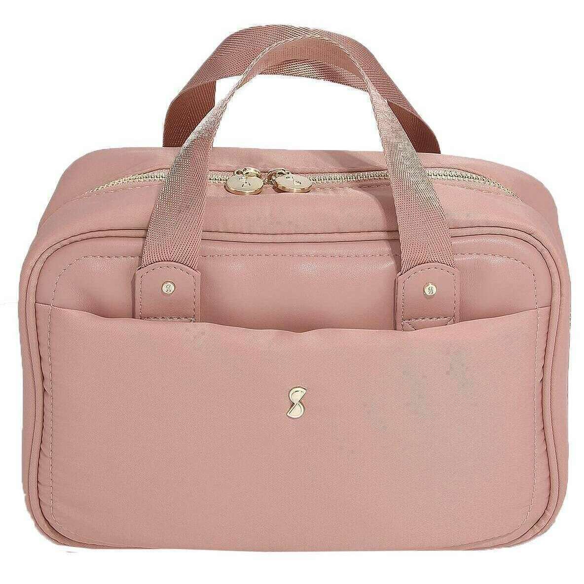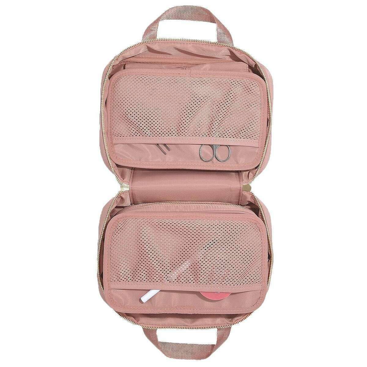 Ved hjælp af lyserød genanvendt nylon er denne hængende vaskpose af stablere perfekt til kvinder og et must have. Det måler 15,5 cm (højde) x 25,2 cm (bredde) x 11 cm (dybde). Alle poserne kommer komplet i stablere emballage. Stablerne Hanging Wash Bag - Pink er den ideelle ledsager, hver gang du rejser på dine rejser på grund af den sammenfoldelige funktion, der passer perfekt ind i din vækpose. Opbevaring vil ikke være et problem med denne smukke vaskepose, da den har mange rum med smukke organiserende funktioner, samt et hovedafsnit med en aftagelig lynlåset taske til dine rejsesmål, du vil have gemt væk. Det åbner op med en krog på toppen, som giver dig mulighed for at hænge den for nem adgang til alle dine toiletartikler, mens du gør dig klar.