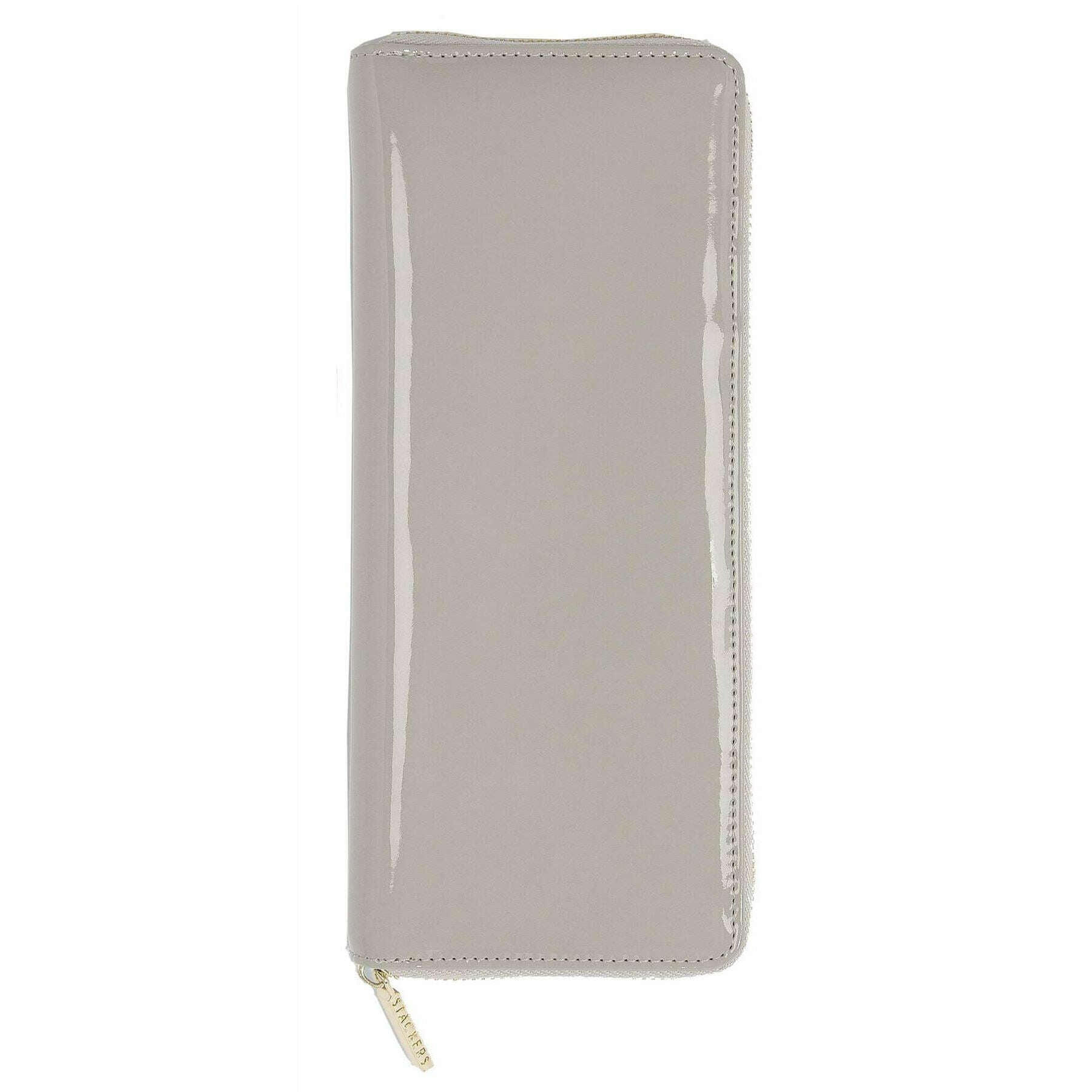 Vi introducerer denne damesmykkerulle fra Stackers, den er fremstillet af imiteret læder i en patentkittegrå farve. Den måler 3 cm (højde) x 24,5 cm (bredde) x 10,3 cm (dybde). Alle smykkeæskerne leveres komplet med stabler-emballage. Stackers Jewellery Roll - Patent Putty Grey er et must have, når du er på farten! Denne grå smykkerulle er perfekt til rejser med smykker og inkluderer en lynlåslukning for ekstra sikkerhed.