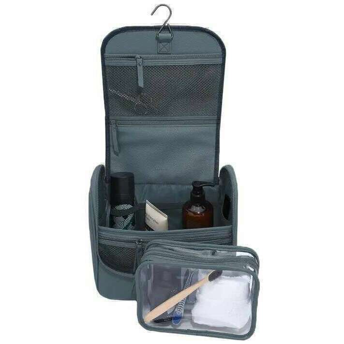 • Hængende krog, lynlås lukning, aftagelig lynlås taske, elastiske sløjfeholdere, 3 store lynlåsrum