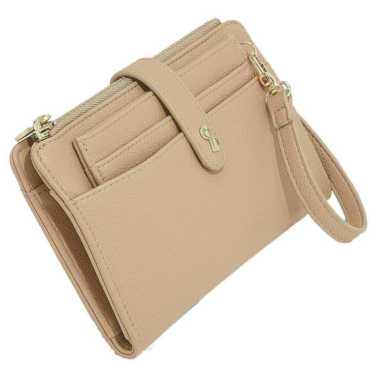 • Ekstern telefonlomme, 6 kortpladser, kosmetisk spejl, aftagelig møntlomme med lynlås, aftagelig håndledsstrop, trykknapper