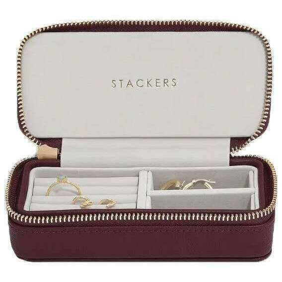 Denne mellemstore rejse smykkekasse til kvinder er dannet af brandstablerne i en bordeauxfarve og er lavet af faux læder og fløjl. Det måler 4,5 cm (højde) x 15,5 cm (bredde) x 7 cm (dybde). Alle smykkekasser kommer komplet i stablere emballage. Stackers Medium Travel -smykkeskasse - Bourgogne er en ideel rejse, der er vigtig for at holde dine smykker sikkert et sted. Garanteret ikke at skuffe, vil dette være sikkert at imponere med sin lille størrelse og bløde interiør med en ring- eller stud øreringssektion og to større sektioner. Gør dette til et must for enhver stilfuld kvinde, der rejser med smykker.