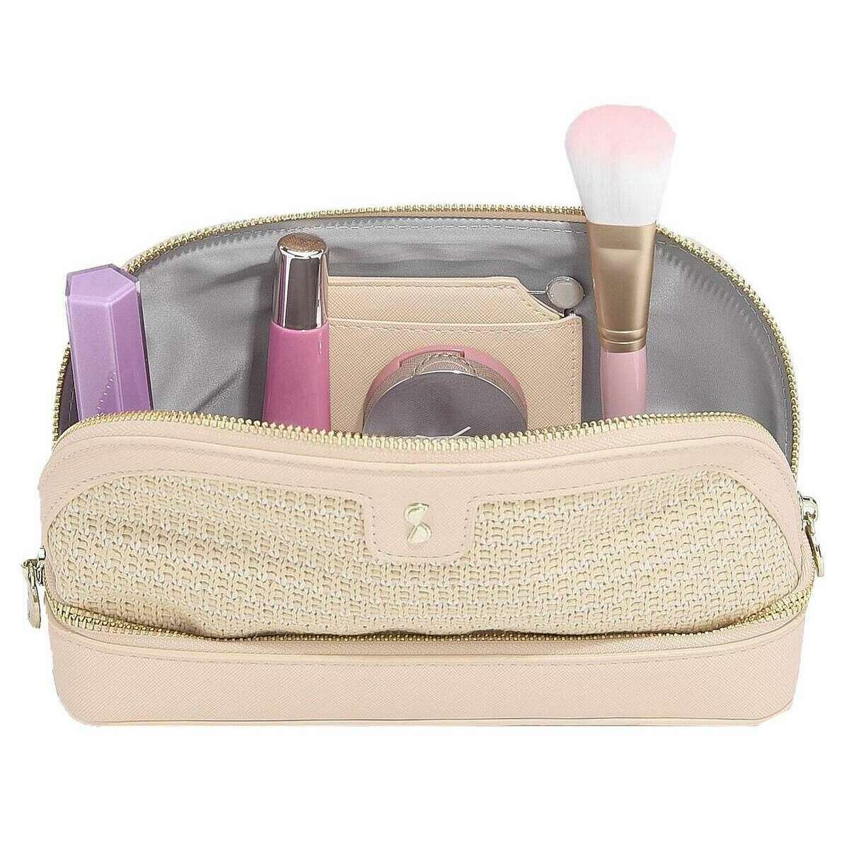 Fremstillet af raffia-effekt og imiteret læder er denne blush pink raffia-kosmetiktaske til kvinder fra designeren Stackers. Den måler 15 cm (højde) x 8,5 cm (bredde) x 24 cm (dybde). Alle poserne leveres komplet med stabler-emballage. Stackers Raffia kosmetiktaske - Blush Pink Raffia er et must have, når du er på farten! Denne unikke og trendy lyserøde raffia kosmetiktaske har en stor opbevaringsplads til al din makeup og hudpleje samt et lille praktisk spejl. Der er også et bundrum, som du kan lyne op for ekstra opbevaring og sikkerhed.