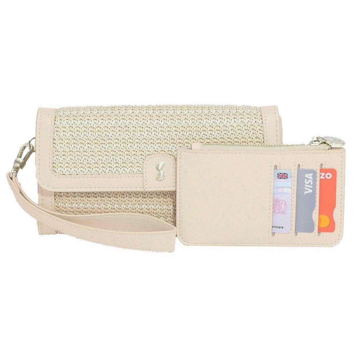 Ved hjælp af pink raffia-effekt og imiteret læder er denne raffia-pung fra Stackers perfekt til kvinder og et must have. Alle pungene leveres komplet med stabler-emballage. The Stackers Raffia Purse - Blush Pink Raffia er et must have, når du er på farten! Denne unikke og trendy lyserøde raffia-pung har flere lommer til penge eller kort, en aftagelig kortpung og et kosmetisk spejl. Leveres komplet med en aftagelig håndledsrem til forskellig brug.