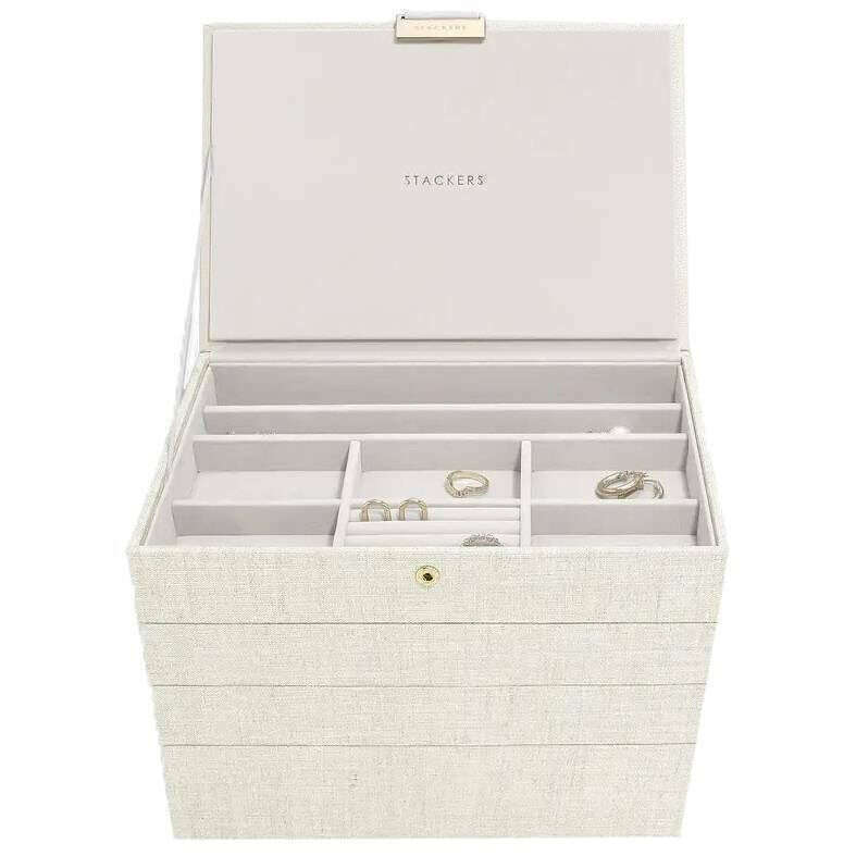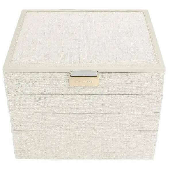 Stablere sæt med 4 klassiske smykkerkasse - havregryn/linned beige