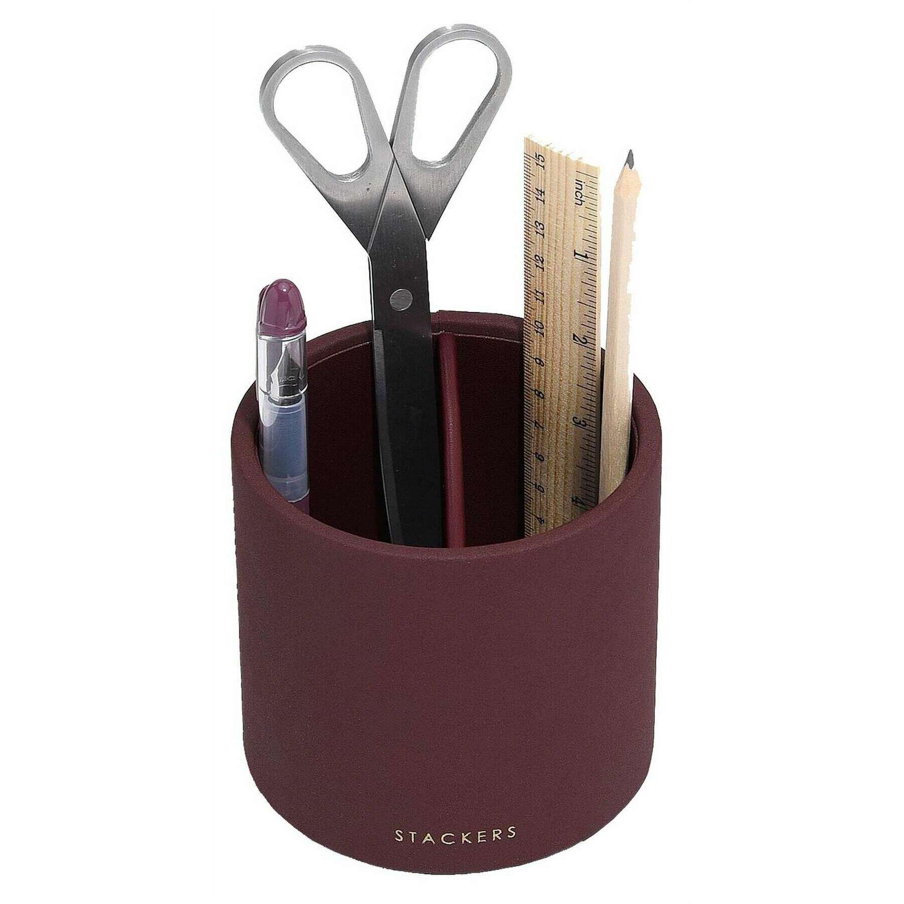 Designer Stackers har bragt dig dette skrivebordstilbehør i imiteret læder til kvinder, der bruger vinrøde granattoner. Den måler 14,3 cm (højde) x 10,7 cm (bredde) x 10,7 cm (dybde). Alt skrivebordstilbehør leveres komplet med stableremballage. Stackers Stationery Pot - Granat Burgundy er et must have til ethvert skrivebord! Denne bordeauxrøde stationære gryde er perfekt til opbevaring af stationære varer og har endda en skjult bakke til mindre genstande nedenunder.