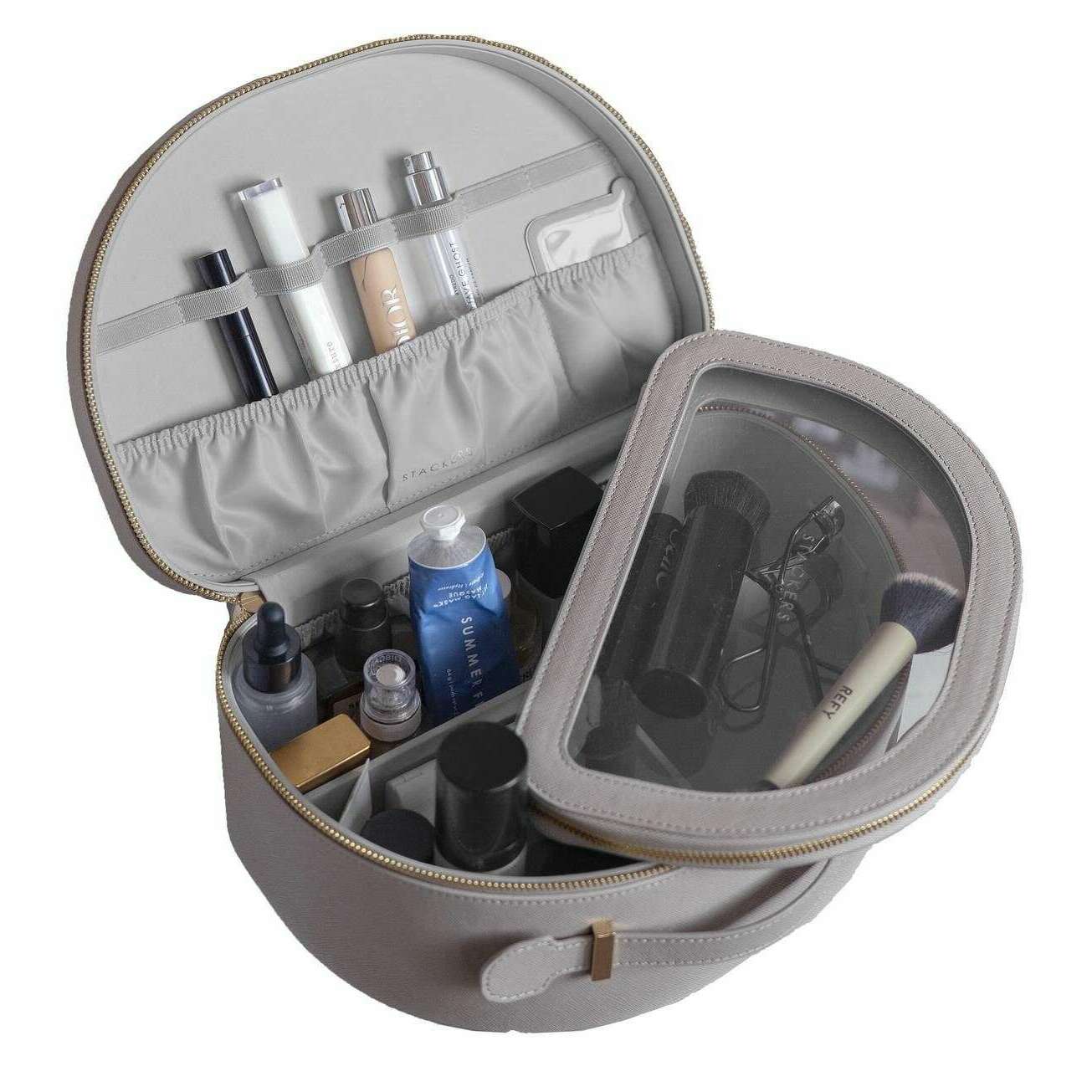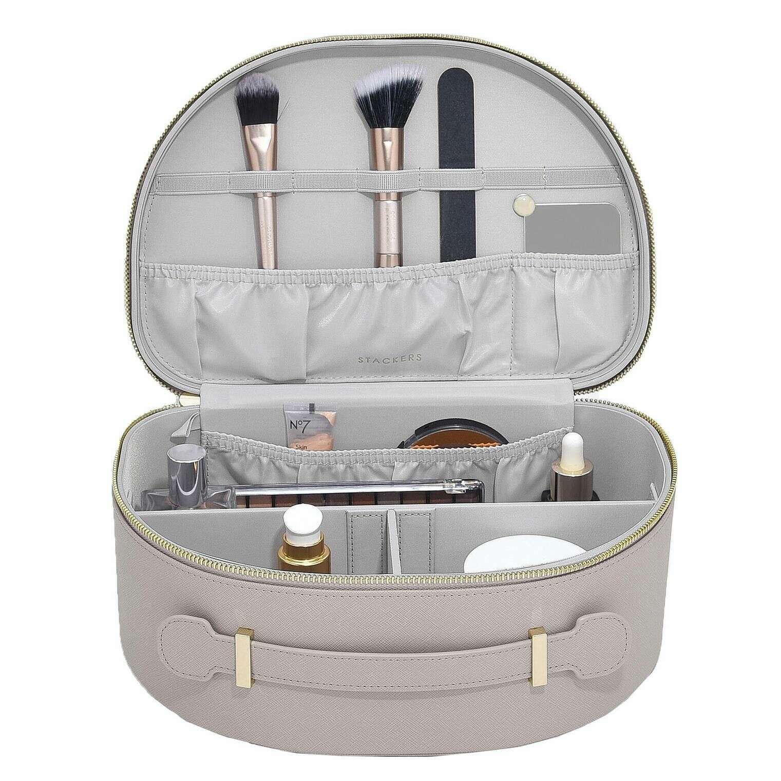 Fremstillet af imiteret læder er denne taupe damesmørekasse af designeren Stackers. Den måler 29 cm (højde) x 20 cm (bredde) x 13 cm (dybde). Alle tilbehørskasserne leveres komplet med stableremballage. Stackers Vanity Case - Taupe er et must have, når du er på farten! Dette taupe vasketøjscover er perfekt til rejser med make-up og hudpleje. Inkluderer lynlås for ekstra sikkerhed.