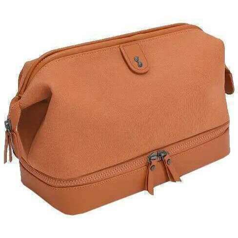 Denne vaskepose til mænd er udformet af brandstablerne i en orange farve og er lavet af faux læder og lærred. Det måler 28 cm (højde) x 13 cm (bredde) x 18,5 cm (dybde). Alle poserne kommer komplet i stablere emballage. Stablerne vasker taske - orange perfekt til at tage rejser eller til at holde dit badeværelse organiseret og pænt. Denne smarte og klassiske taske har et stort hovedrum med separate rum til at arrangere dine toiletartikler og et yderligere stort bundrum lukket af en lynlås for at holde genstande som tandbørster eller barbermaskiner med en valgfri aftagelig skillelinje. Denne poser, der foring er aftørbar, fantastisk til at holde den ser frisk og fri for pletter.
