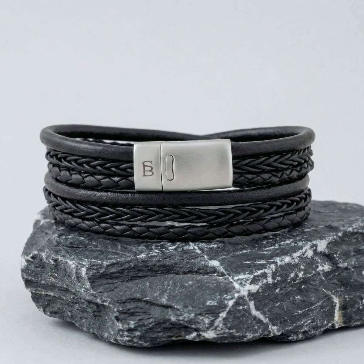 Dette bonacci-lagdelte flerstrengede læderarmbånd af mærket Steel & Barnett er lavet af 100 % okselæder og rustfrit stål og fremvises i sort. Alle armbåndene kommer komplet med stål & barnett emballage. Steel & Barnett Bonacci Layered Multi-Strand Læderarmbånd - Sort er et raffineret udtryk for håndværk og tidløs stil. Hver tråd er håndlavet af ægte okselæder i fin kvalitet, og hver tråd er omhyggeligt flettet for at skabe en rig, lagdelt tekstur, der taler til både kvalitet og sofistikering. Dens 12 mm bredde giver en dristig, men alsidig tilstedeværelse, hvilket gør den velegnet til hverdagsbrug eller høje lejligheder. Armbåndet er afsluttet med en børstet stållås, fremstillet af 316L rustfrit stål for enestående holdbarhed og modstandsdygtighed over for korrosion. Dens magnetiske låsedesign sikrer ubesværet fastgørelse, mens den bevarer en sikker, behagelig pasform hele dagen. Bonacci-armbåndet er elegant, holdbart og gennemtænkt designet og er et iøjnefaldende tilbehør, der komplementerer moderne stil med et klassisk touch.