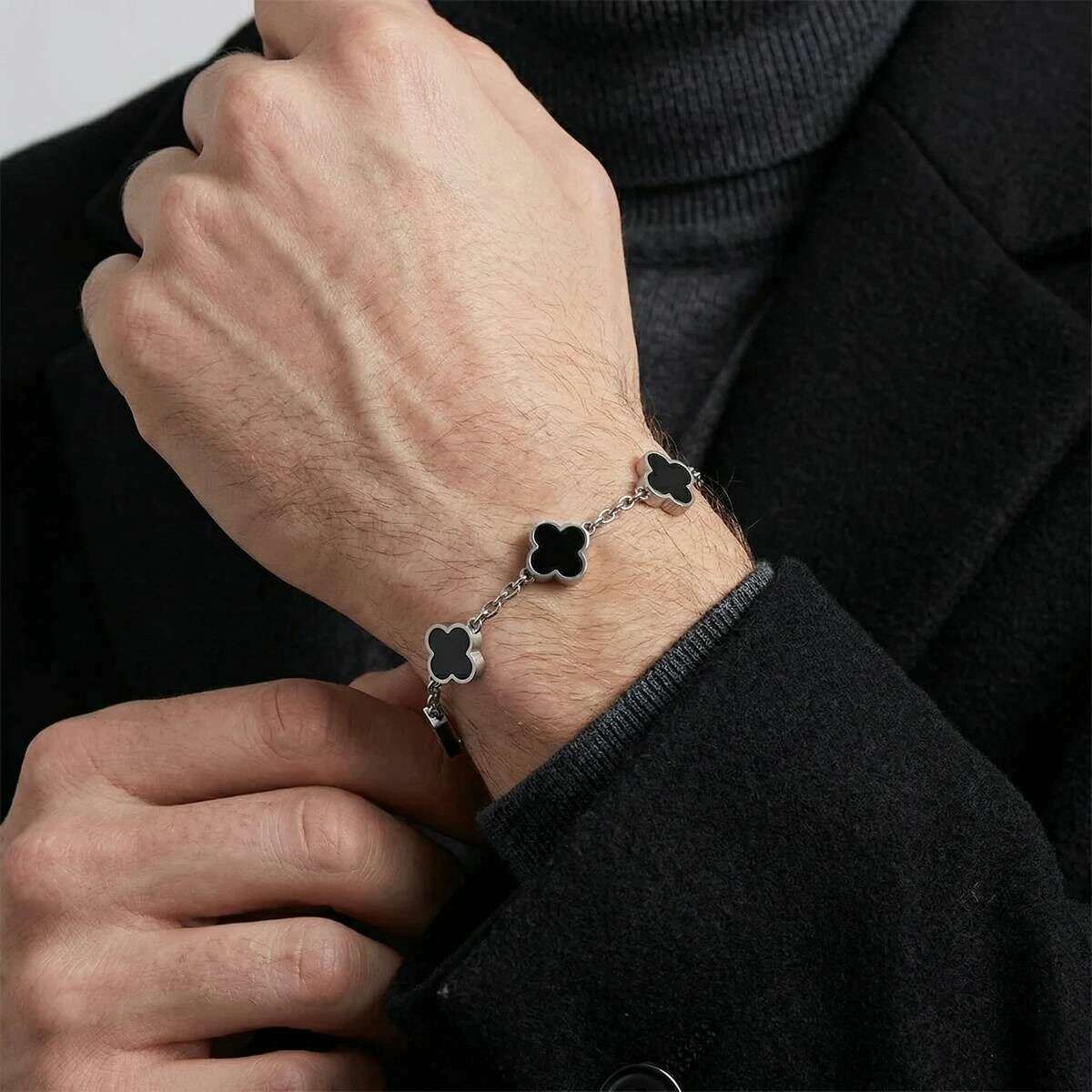 Steel & Barnett Clover Armbånd - Sort Onyx/Sølv