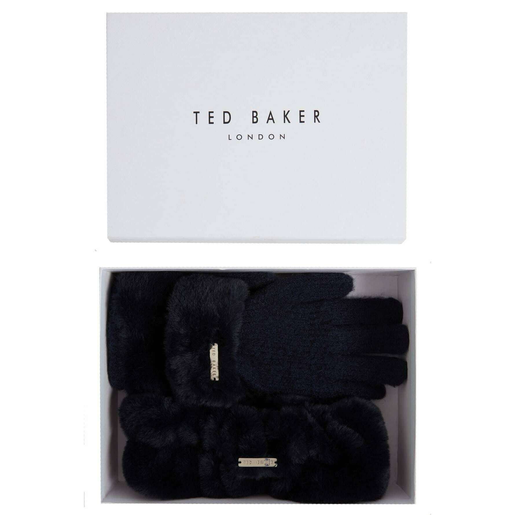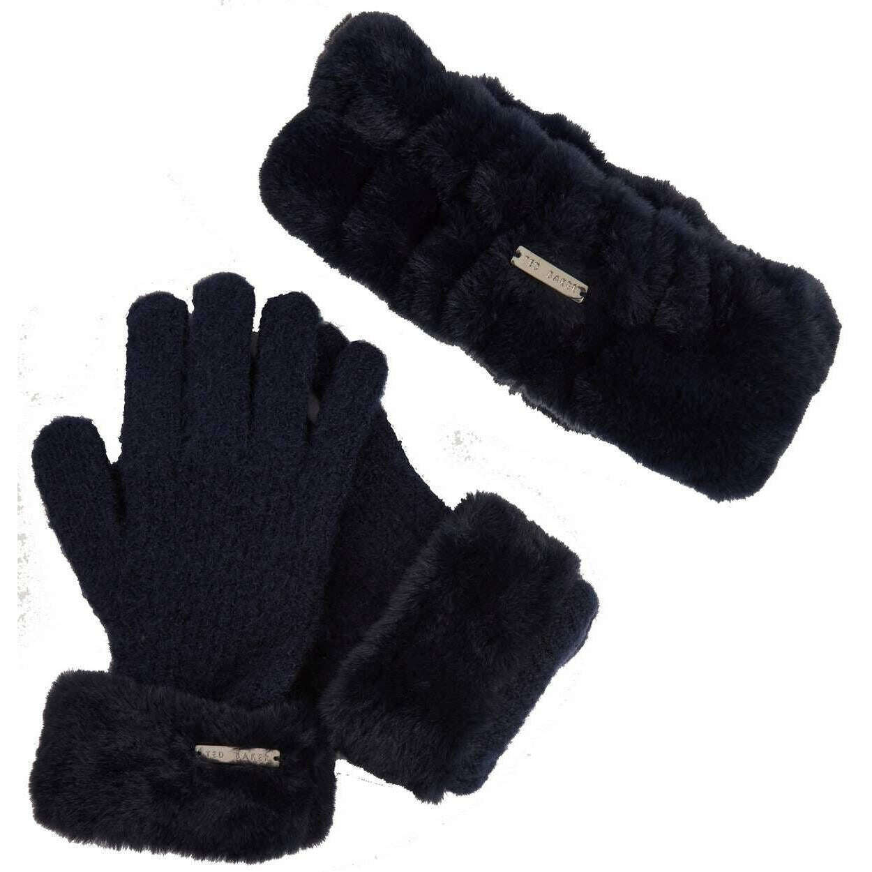Ted Baker Furinni Faux Fur Peamband and Gloves Set - Navy