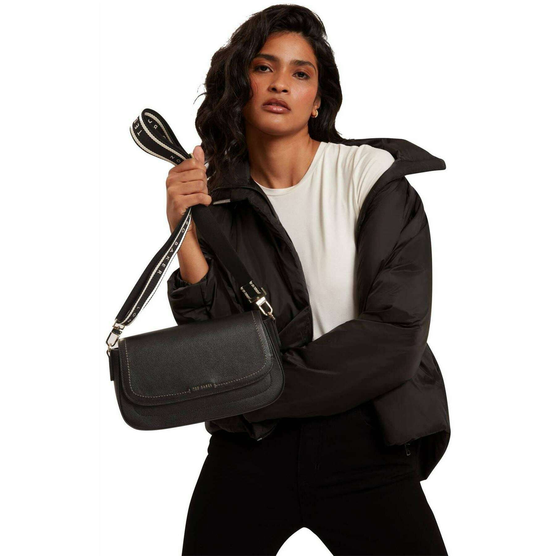 Ted Baker Louiize Læder Flap Over Crossbody Taske - Sort