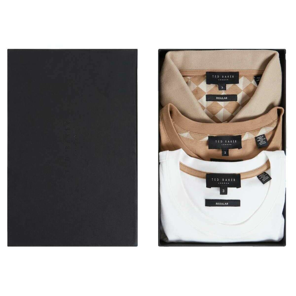 Ted Baker Mayison 3 Pack Box Print Jersey T -shirt - Tan Tan