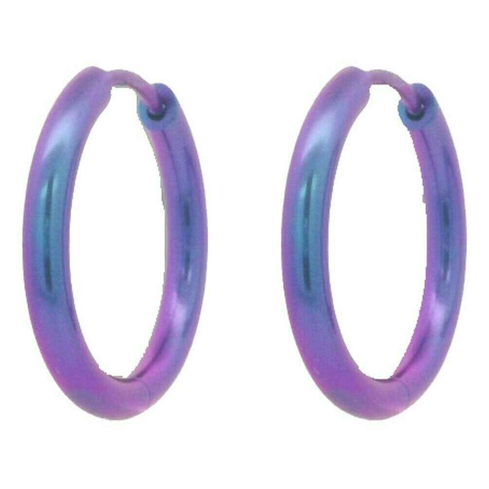 Ti2 Titanium Medium Runde Hængslede Hoop Øreringe - Lilla