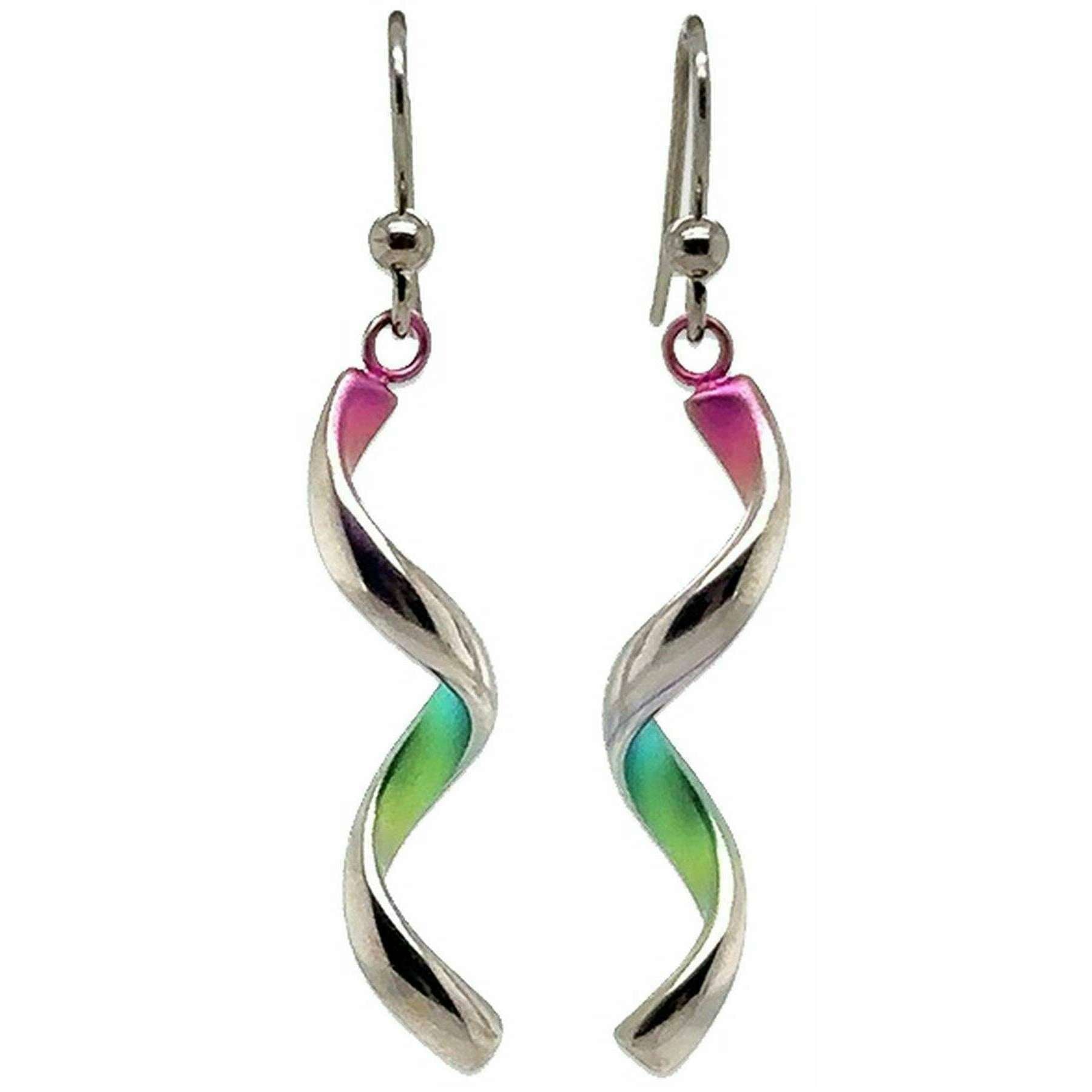 Ti2 Titanium Spiral Drop Eareringe - Rainbow B