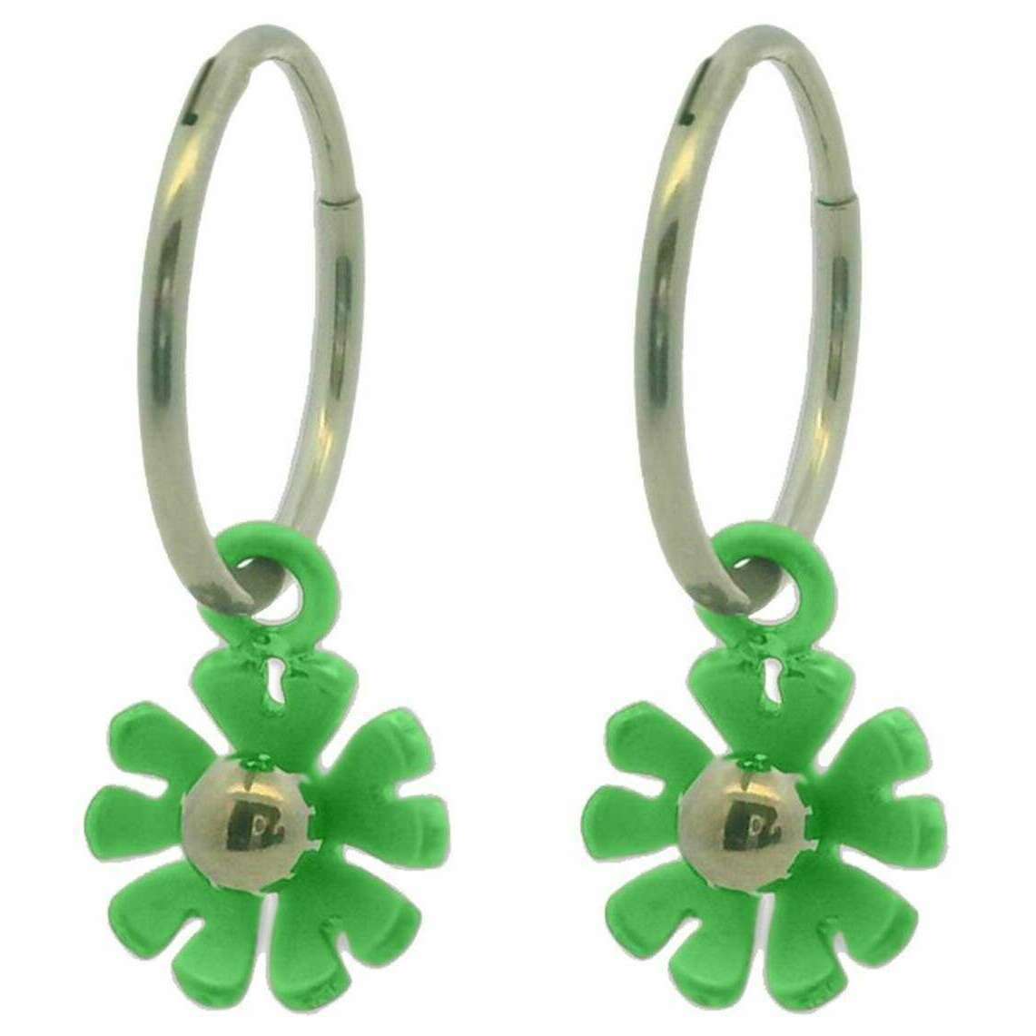 Ti2 Titanium Ten Petal Flower Charm Hoop øreringe - Grøn