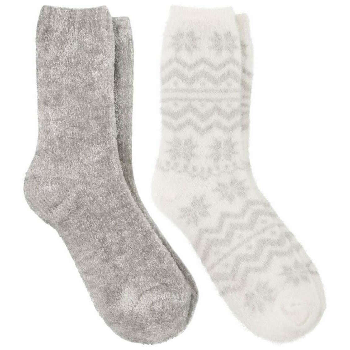 Totes Toasties 2 Pack Fair Isle og Chenille Supersoft Sengestrømper - Grå/Hvid