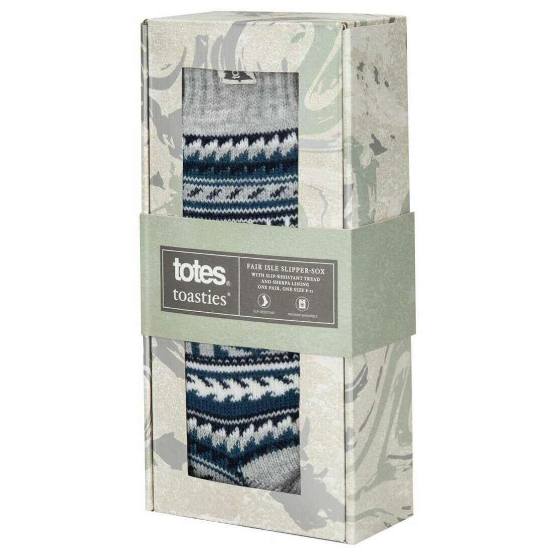 Totes Toasties Fair Isle Slipper Socks - Blue