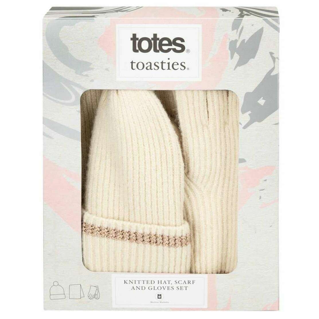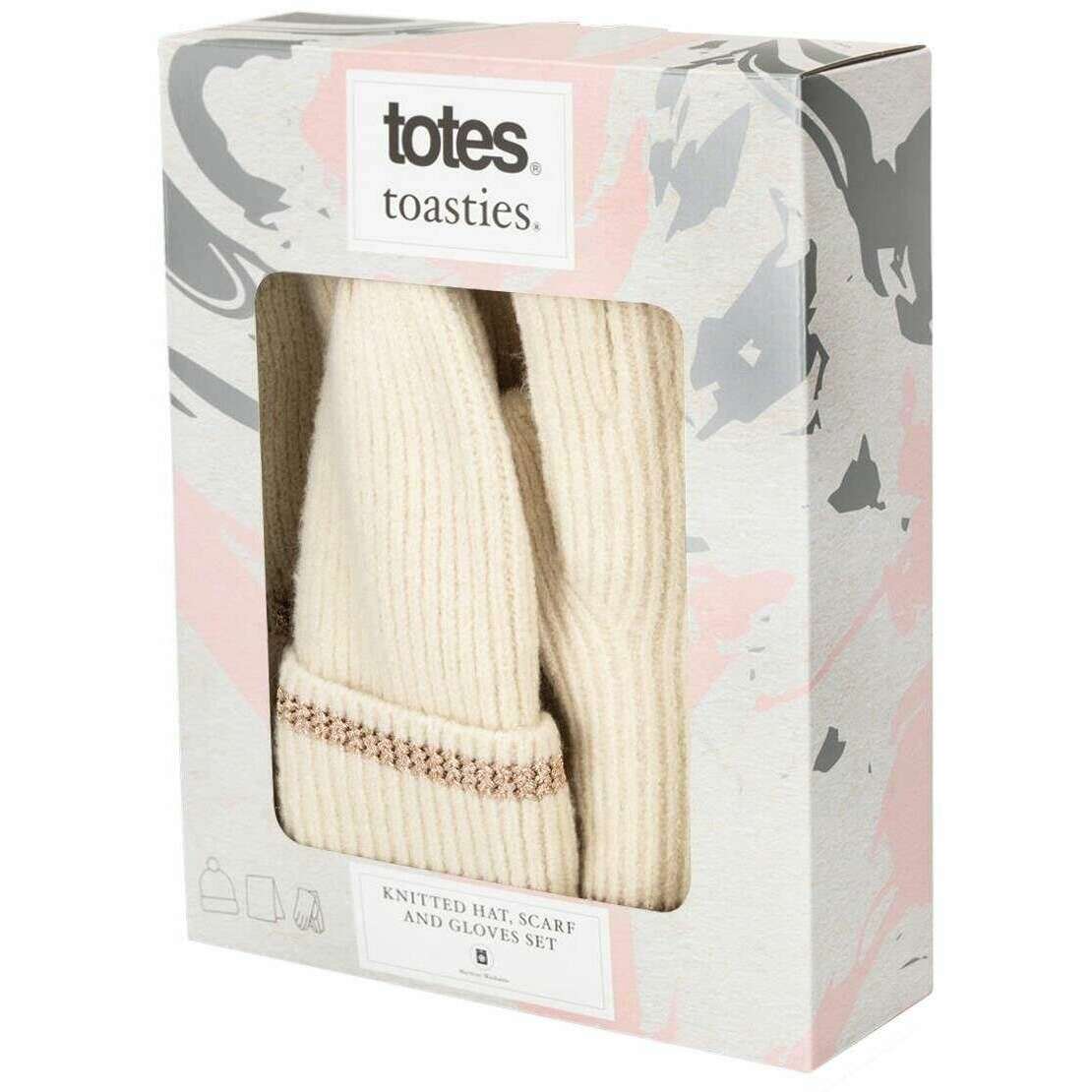 Totes Toasties strikket hue tørklæde og handske gavesæt - havrecreme