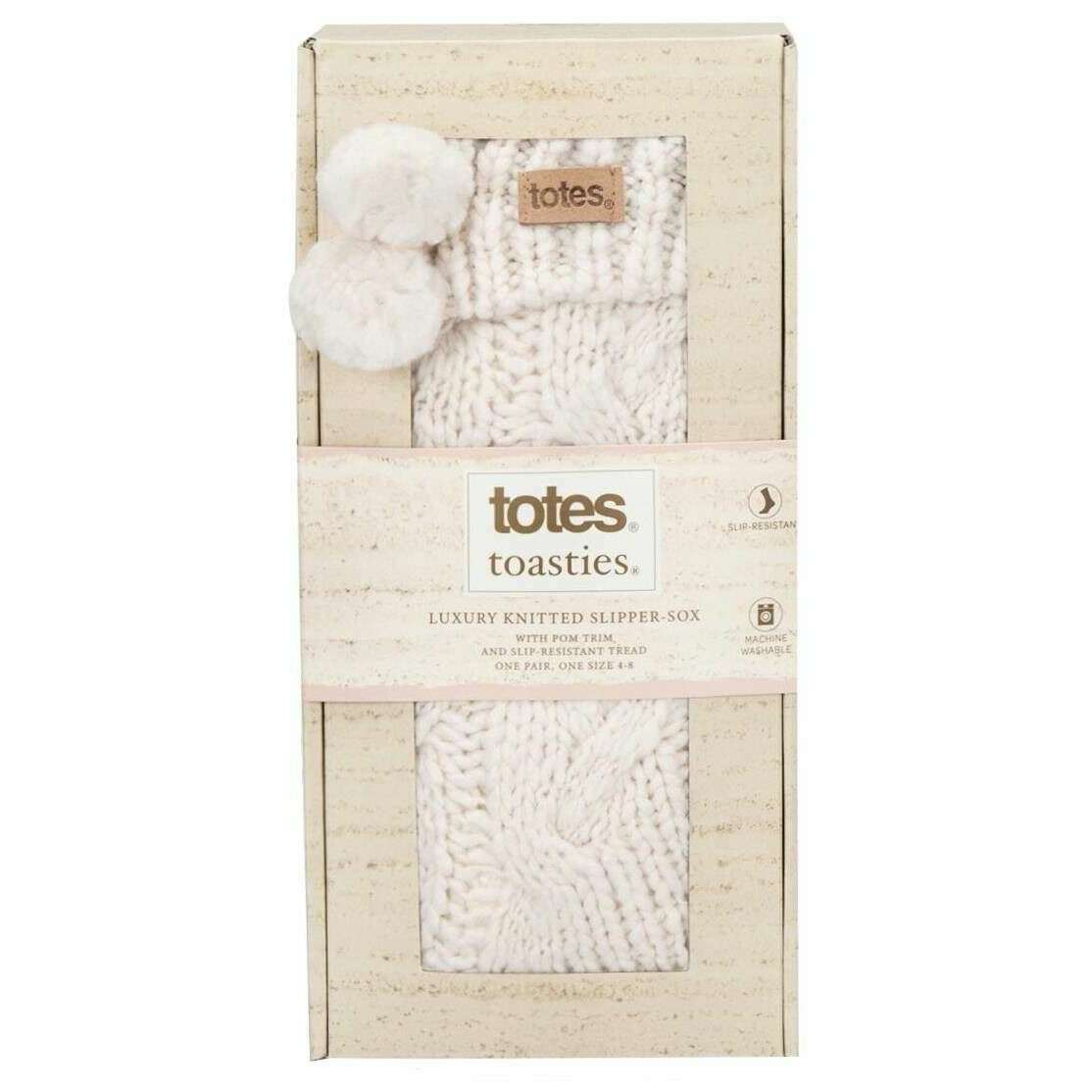 Totes Toasties Luxury Chunky Knit Slipper Socks - Creme