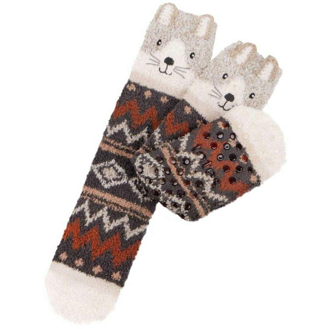 Totes Toasties Novelty Super Soft Slipper Socks - Cat Brown