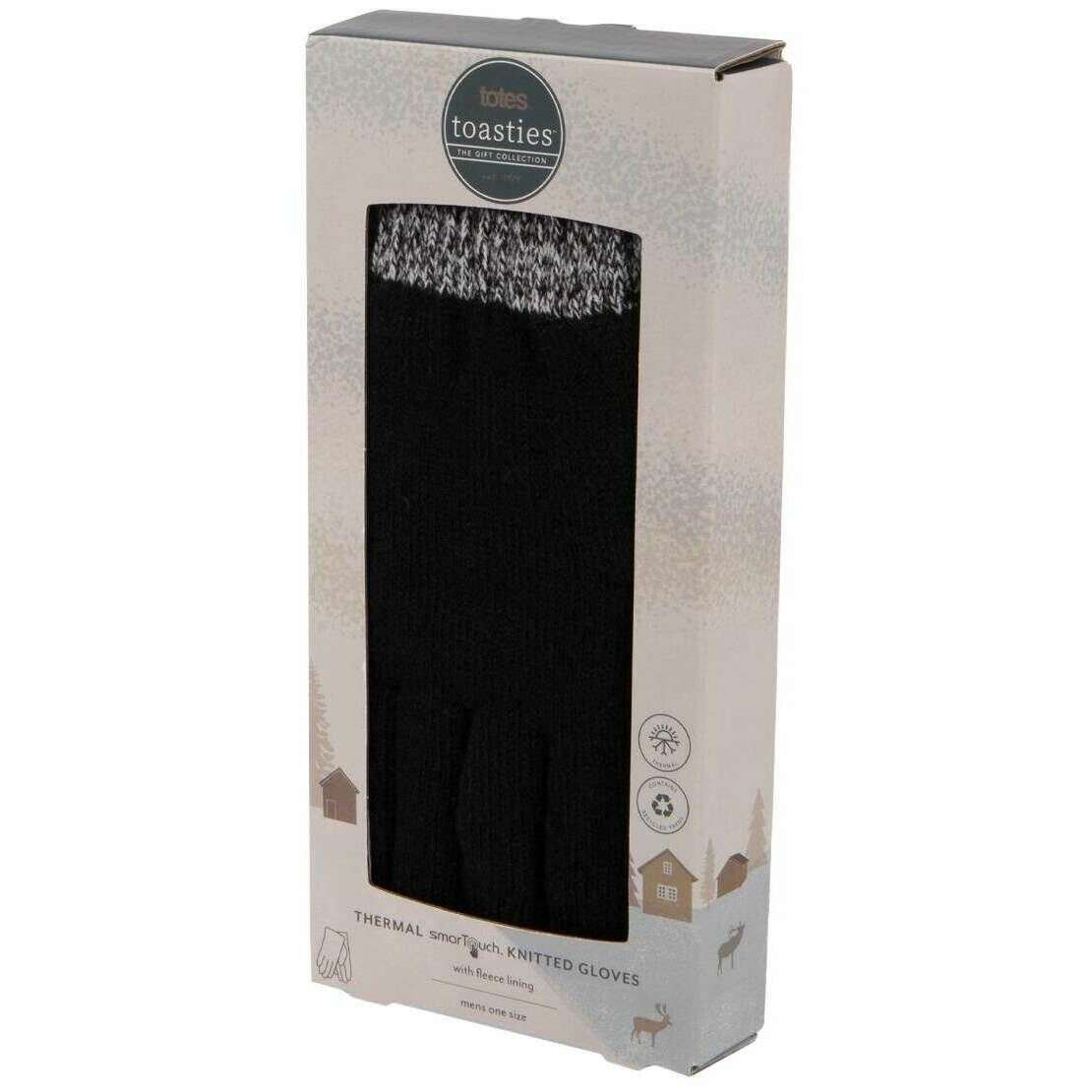Totes Toasties Stretch Strikkede Smartouch Handsker - Sort/Grå