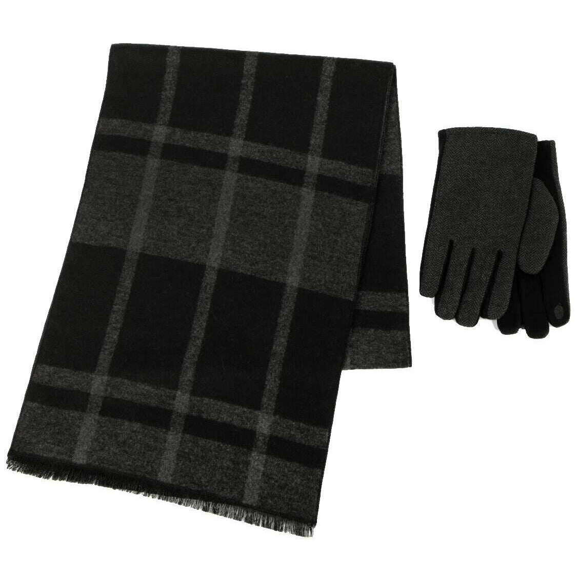Totes Toasties Wool Blend Ternet tørklæde og termoforede handsker Gavesæt - Sort