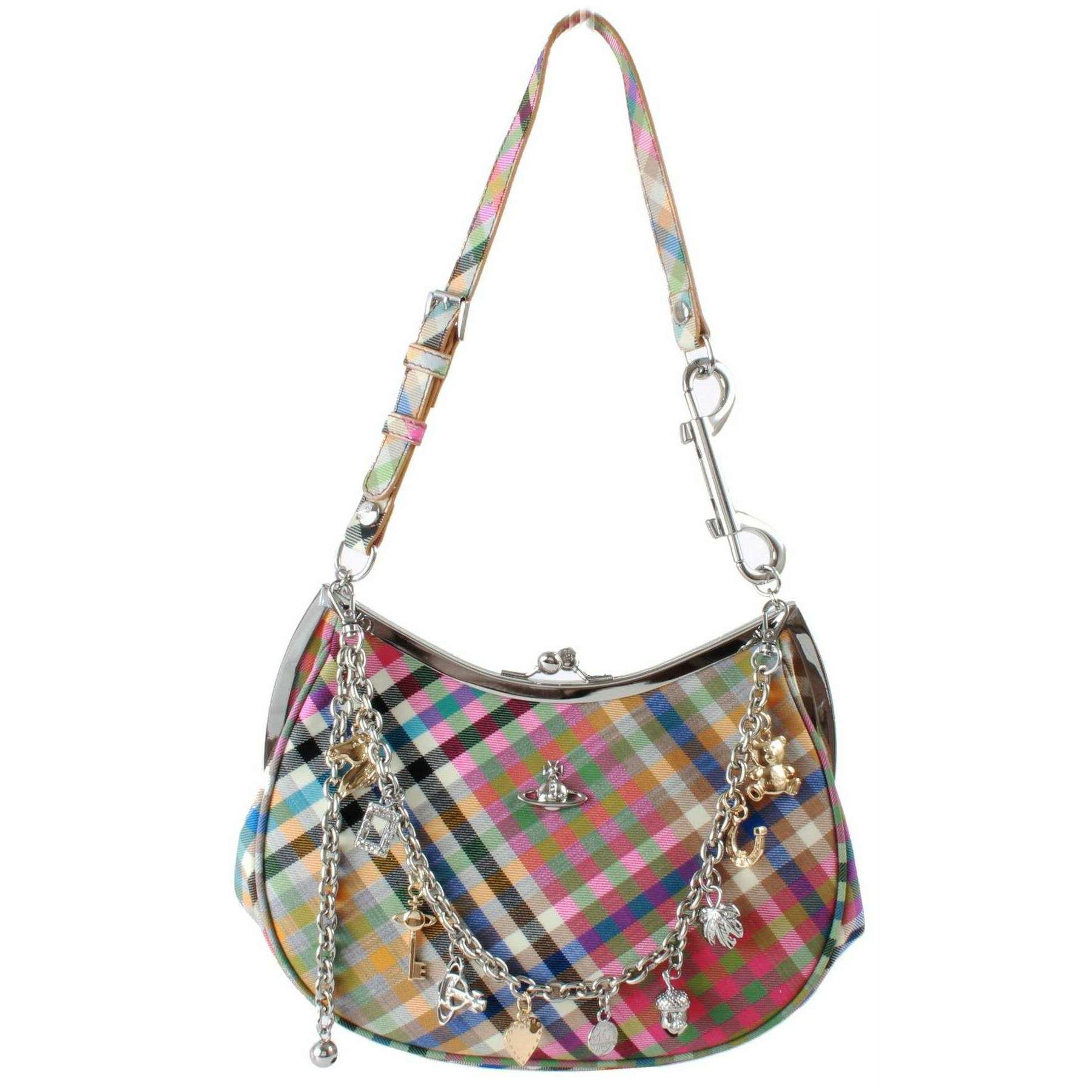 Vivienne Westwood Heather Check Charm Frame Pung - Beige/Pink/Blå