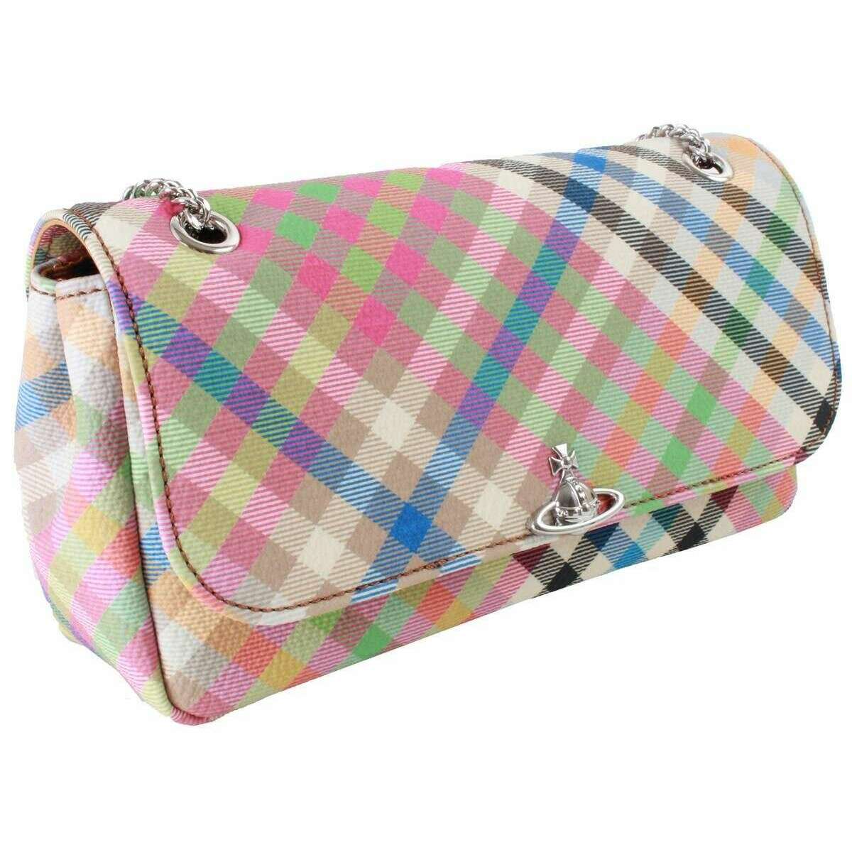 Vivienne Westwood Heather Plaid Chain Crossbody-pung - Beige/Pink/Blå