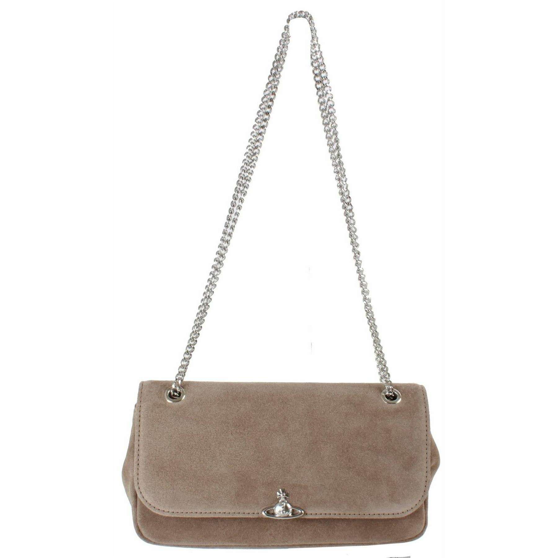Vi introducerer denne crossbody-taske med kæde i ruskind til kvinder fra Vivienne Westwood, den er fremstillet af 100 % kalveskind i en stenbeige farve. Den måler 14 cm (højde) x 22,5 cm (bredde) x 8 cm (dybde). Alle poserne kommer komplet med vivienne westwood støvpose. Vivienne Westwood Suede Chain Crossbody Bag - Stone Beige er et stilfuldt og praktisk tilbehør med detaljer med en fantastisk og slank finish, som vil sætte dig op til at skille dig ud. Den er lavet af materialer af høj kvalitet og har en kædeskulderrem for alsidige bæremuligheder, hvilket gør den til et elegant valg til enhver lejlighed. Perfekt til at tilføje et strejf af luksus til ethvert outfit, denne smukke kædepung er afgørende for at fuldende dit look.