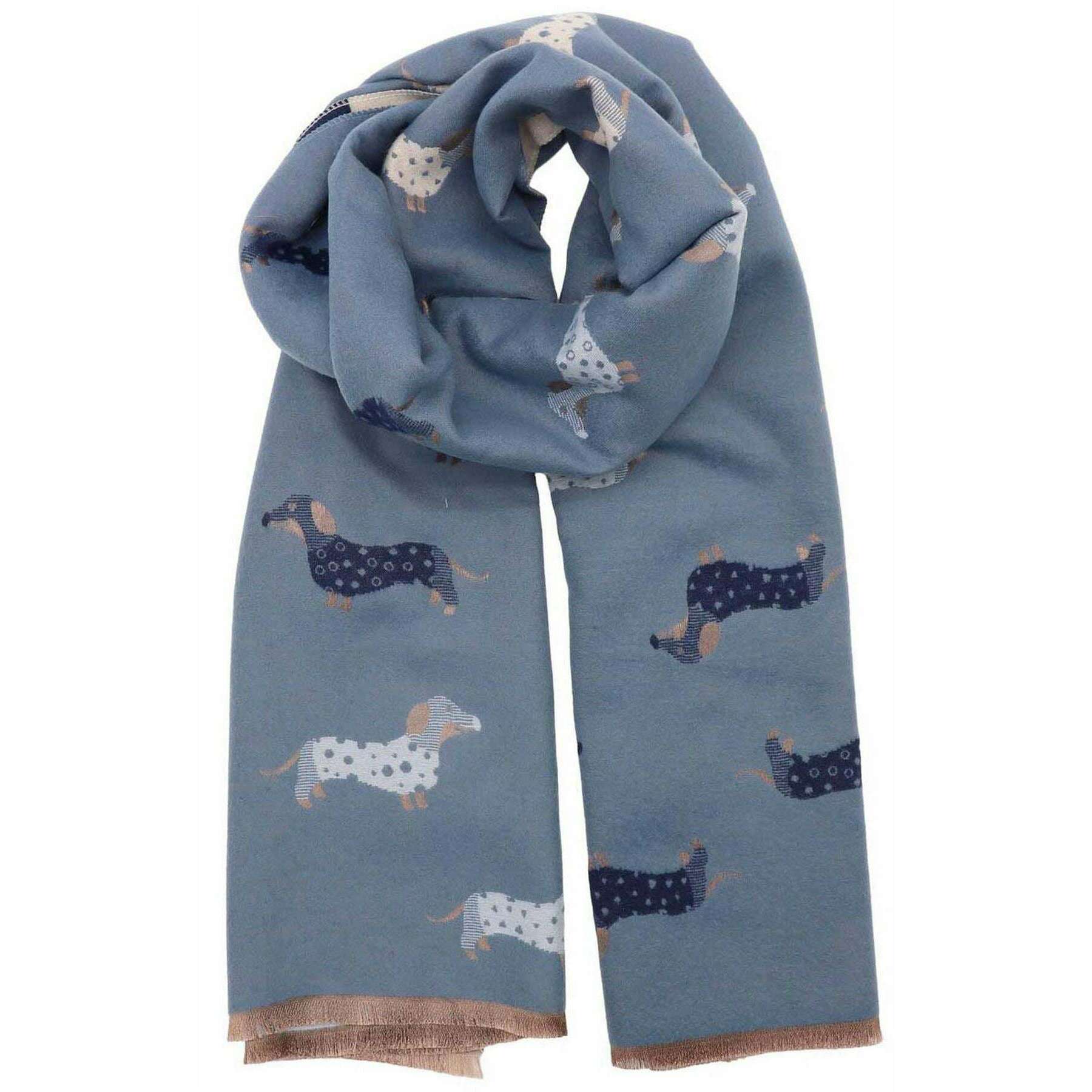 Zelly Dachshund Vinter Vægt Print Tørklæde - Blå