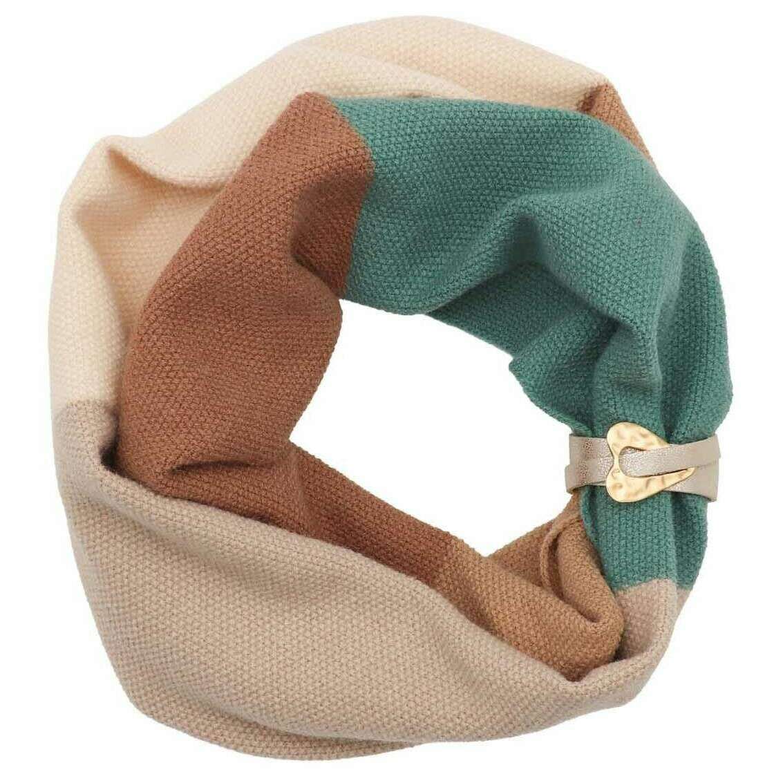 Zelly Faux Læder Detail Loop Snood - Beige/Cream/Teal
