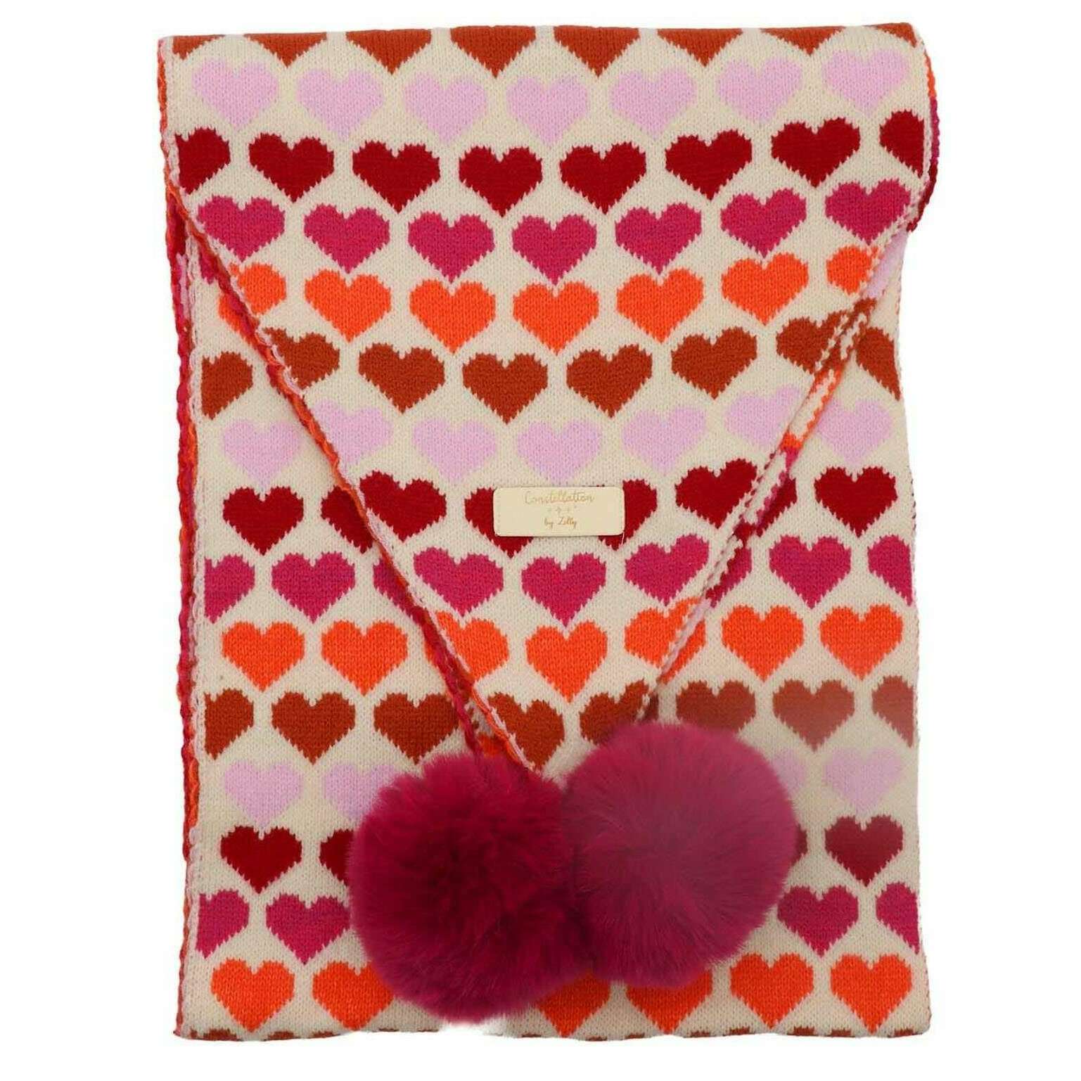 Zelly Heart Pom Pom tørklæde - Pink/Rød